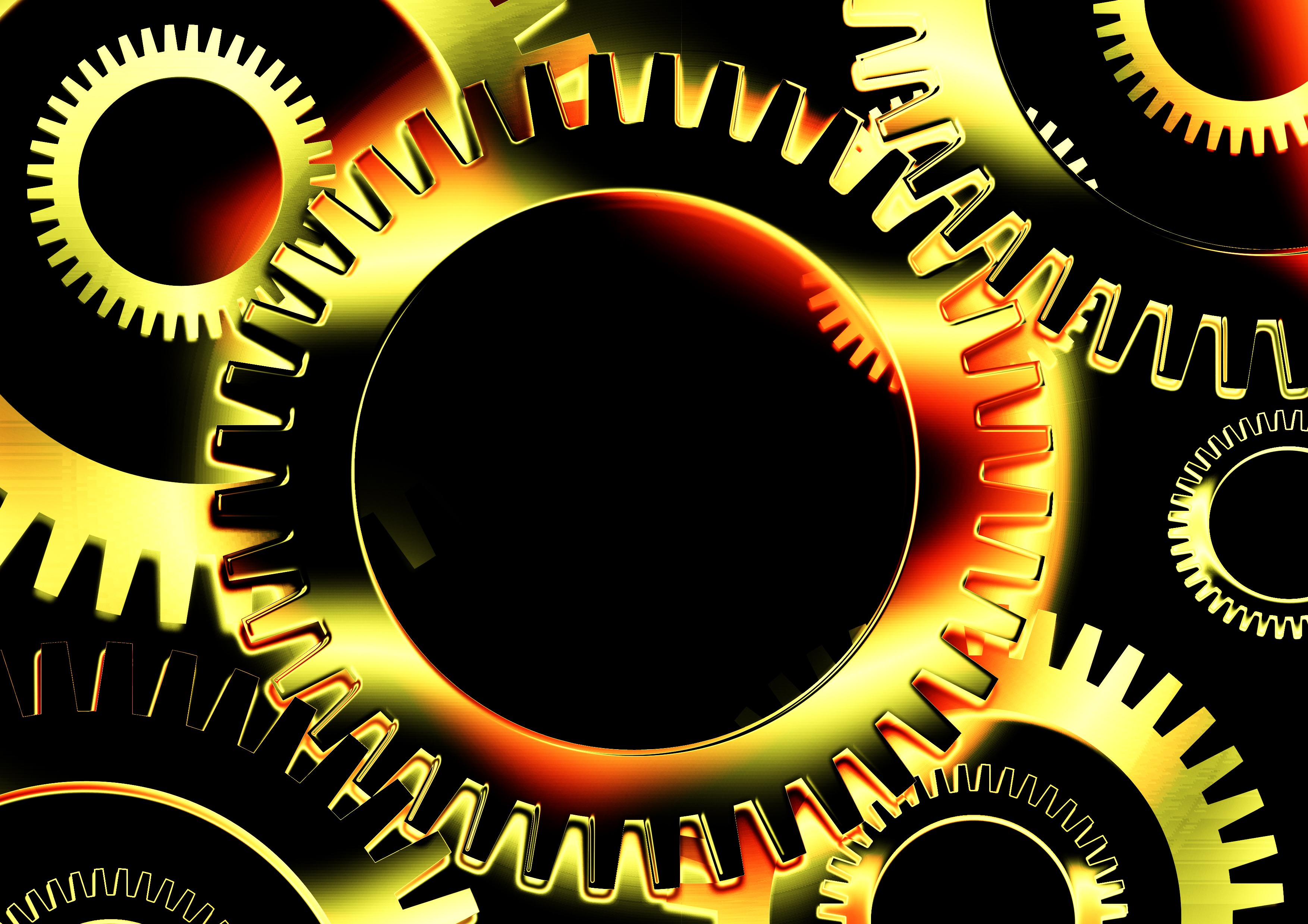 Free image/jpeg, Resolution: 3508x2480, File size: 1.19Mb, Colorful, shiny gears, at black background, clipart picture with tags: gears, colorful, shiny, black background, clipart