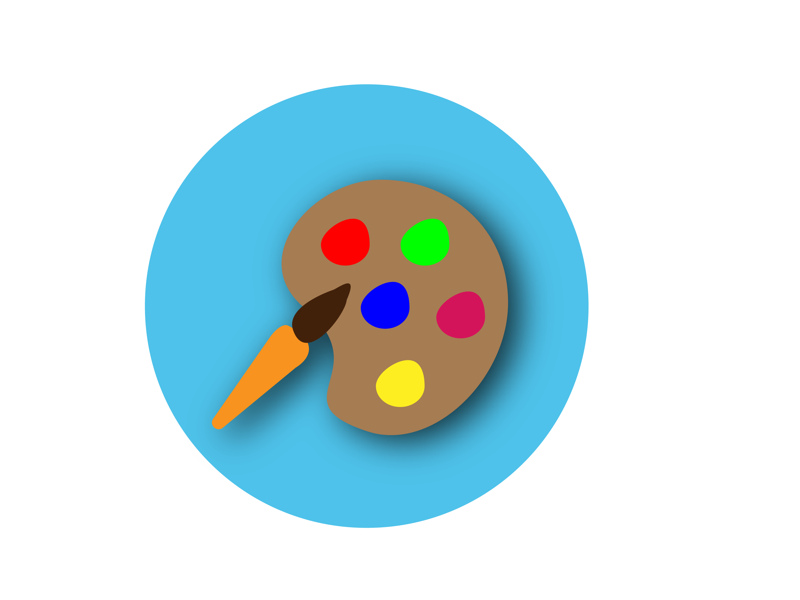 Free image/png, Resolution: 3333x2500, File size: 167Kb, painted brush and palette of colors in a blue circle picture with tags: color, dish, painting, art, artist, painter, brushes