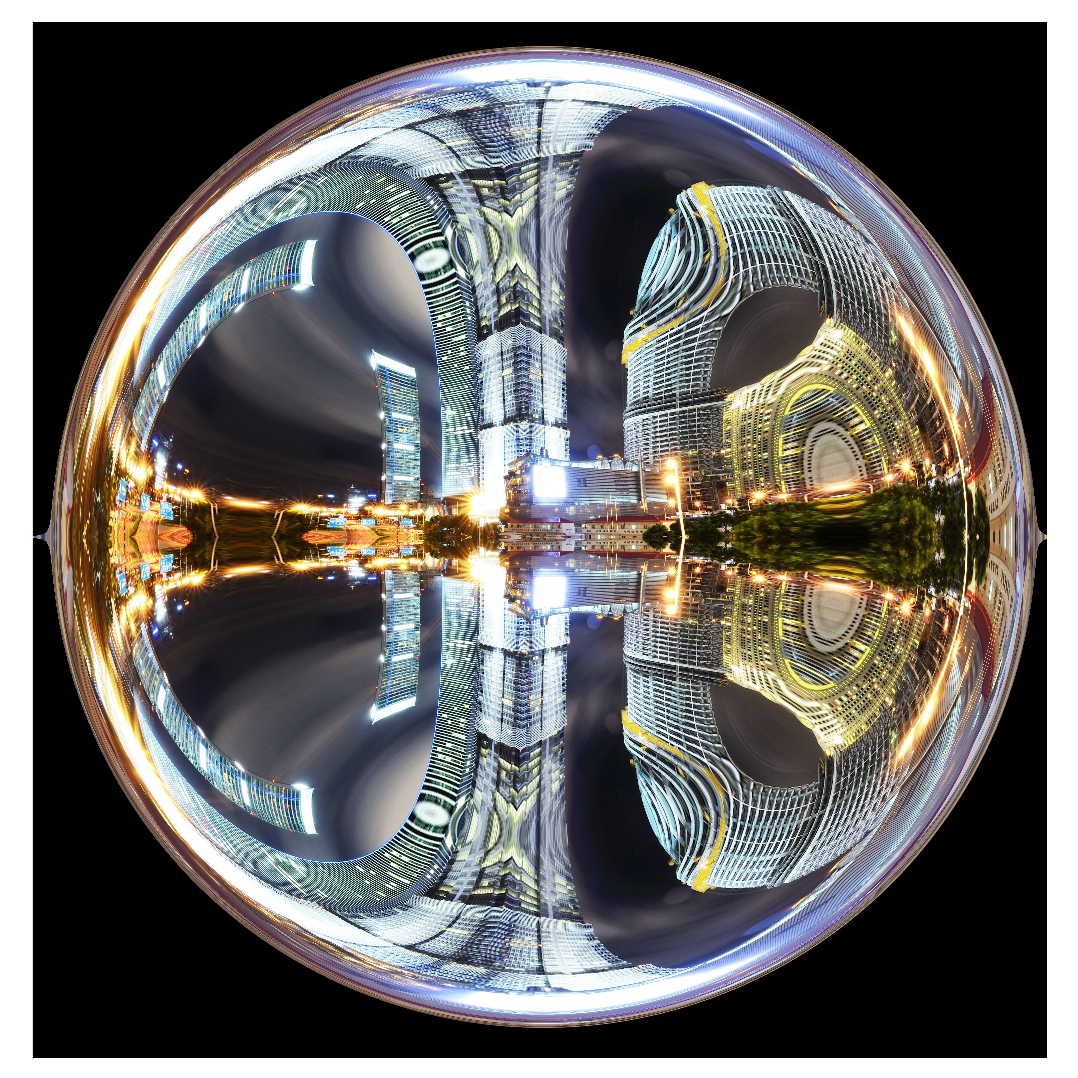 Free image/jpeg, Resolution: 4500x4500, File size: 5.04Mb, Skyscrapers are reflected in a glass bowl picture with tags: city, skyscrapers, lighting, ball, skyscraper, architecture, building