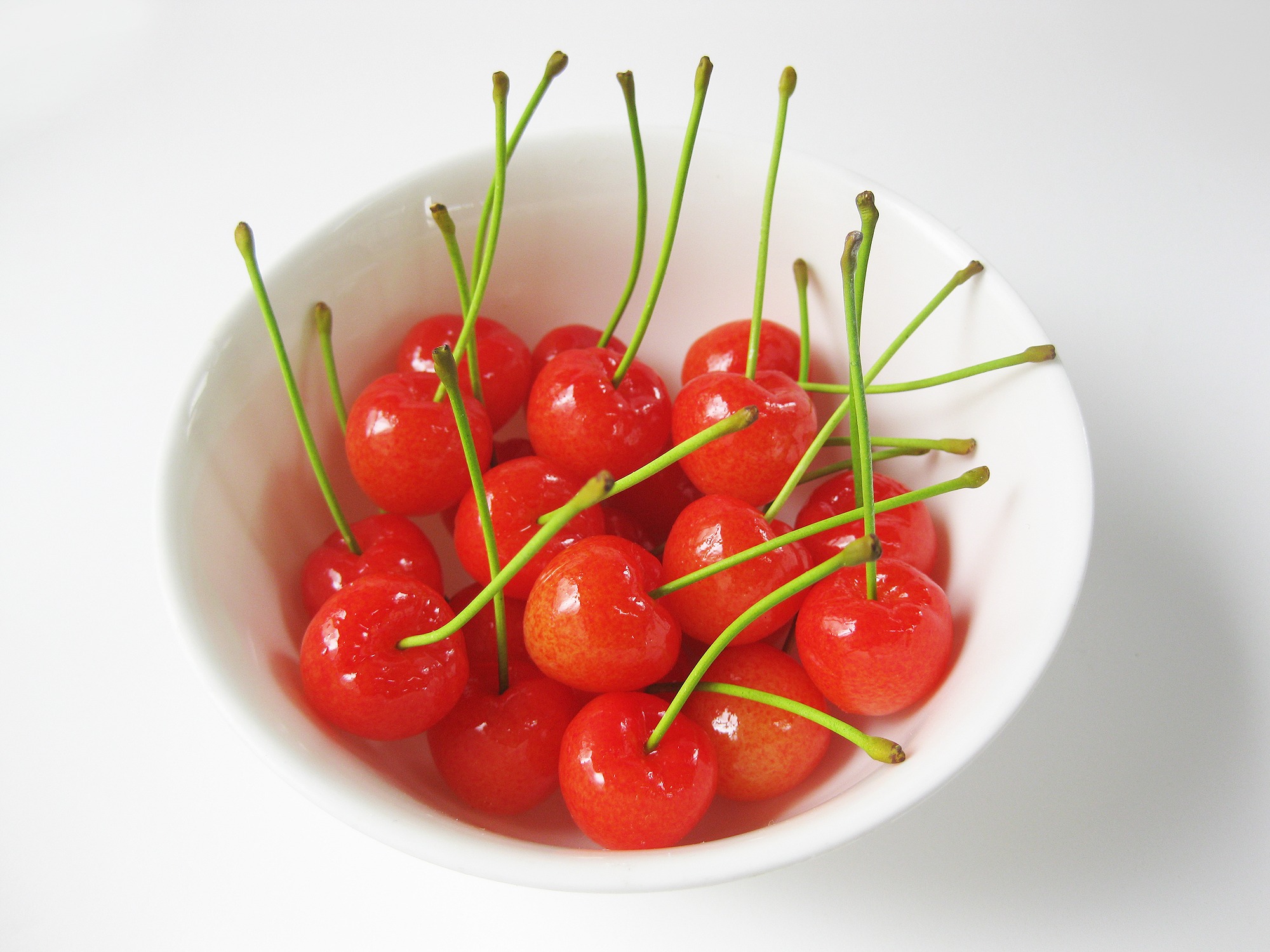 Free image/jpeg, Resolution: 2000x1500, File size: 486Kb, ripe cherries in a white bowl picture with tags: cherry, berry, bowl, fresh, healthy