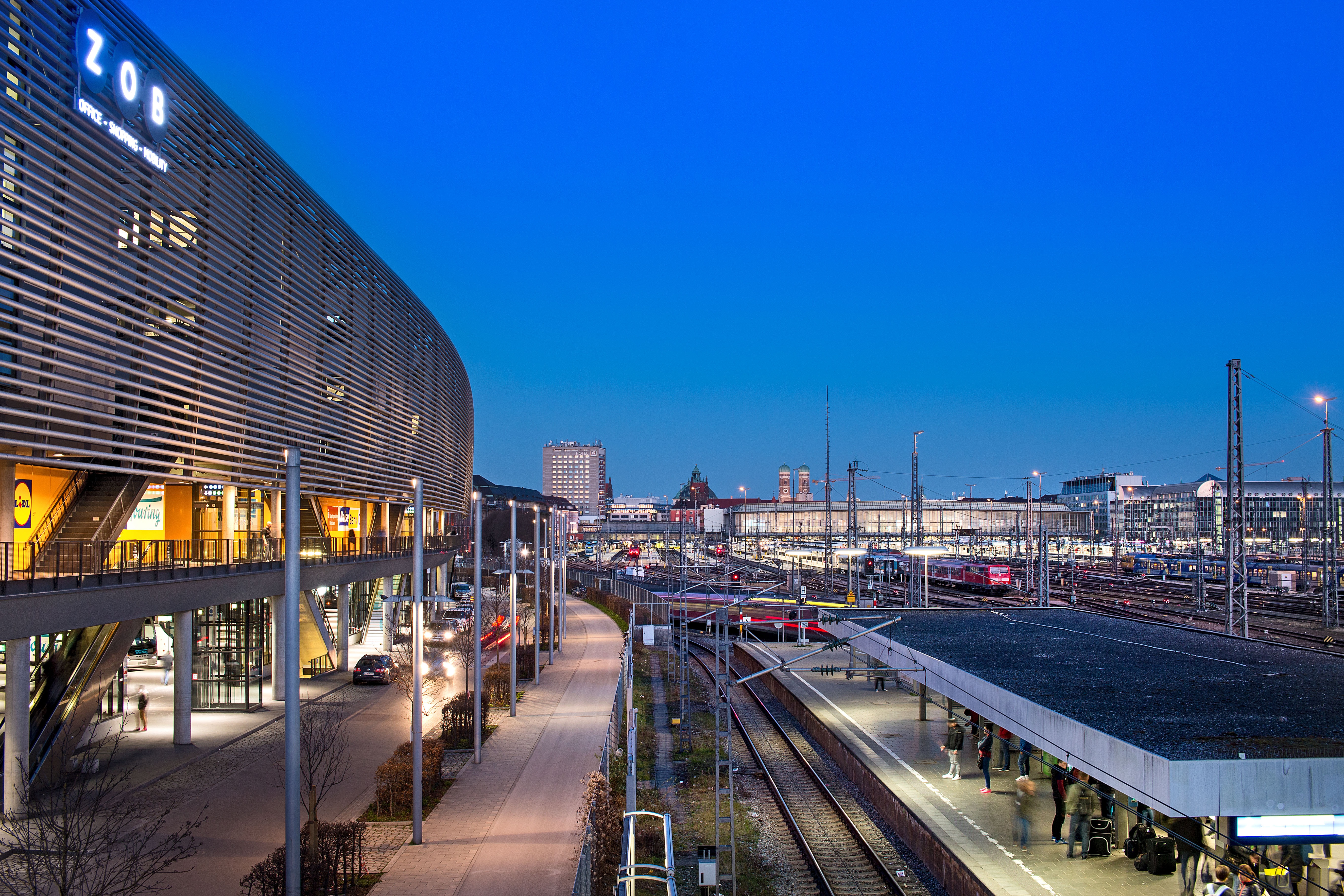 Free image/jpeg, Resolution: 5454x3636, File size: 4.68Mb, Transport System for Travel picture with tags: travel, transport system, architecture, city, sky, munich, train, sunset