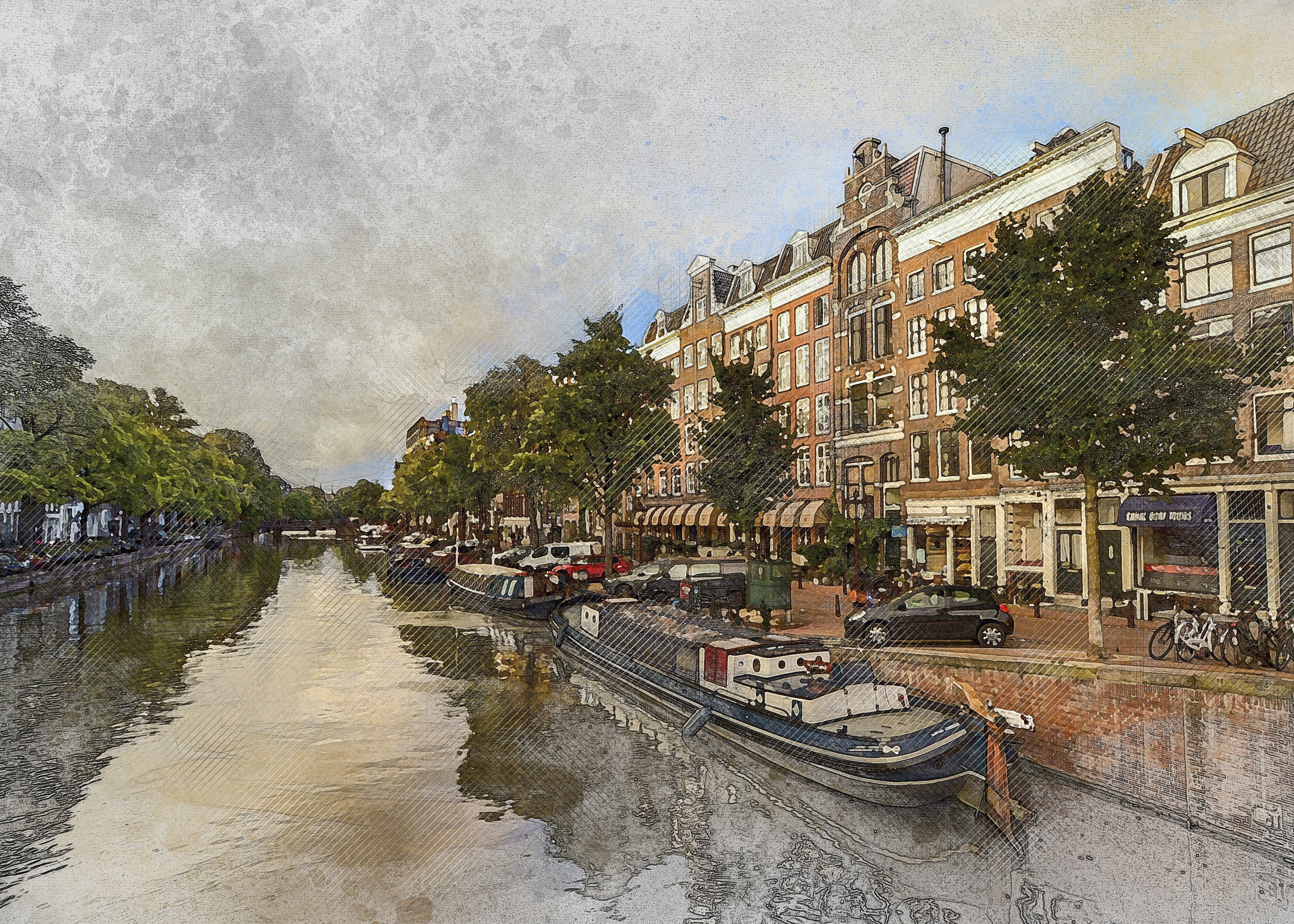 Free image/jpeg, Resolution: 3749x2678, File size: 5.48Mb, Water City Amsterdam drawing picture with tags: water, city, amsterdam, town, travel, channel