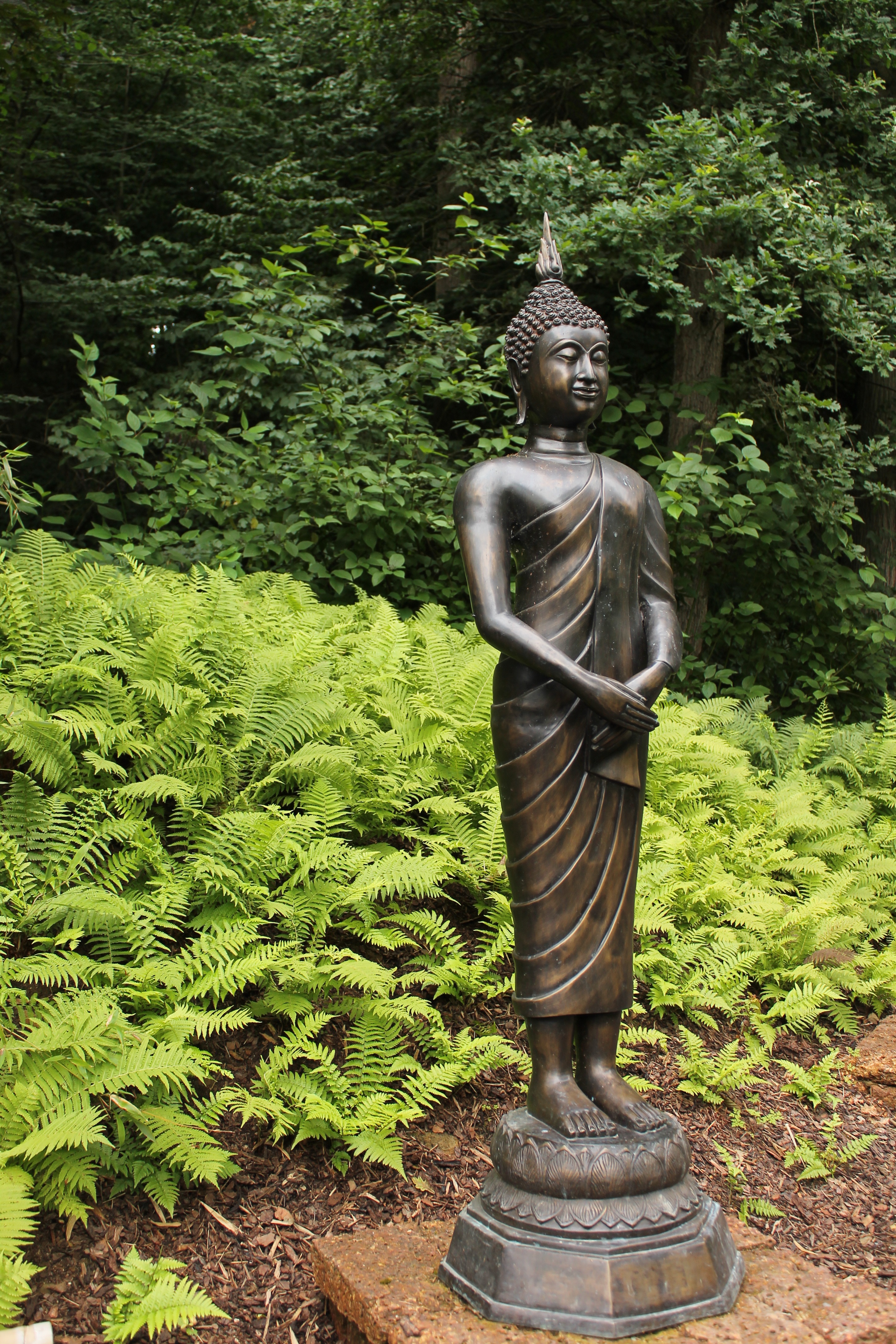 Free image/jpeg, Resolution: 2848x4272, File size: 4.08Mb, Beautiful, shiny statue of Buddha, near the beautiful, green plants of different shades, in Japan picture with tags: japan, zen, garden, buddha, beautiful, shiny, green plants, shades