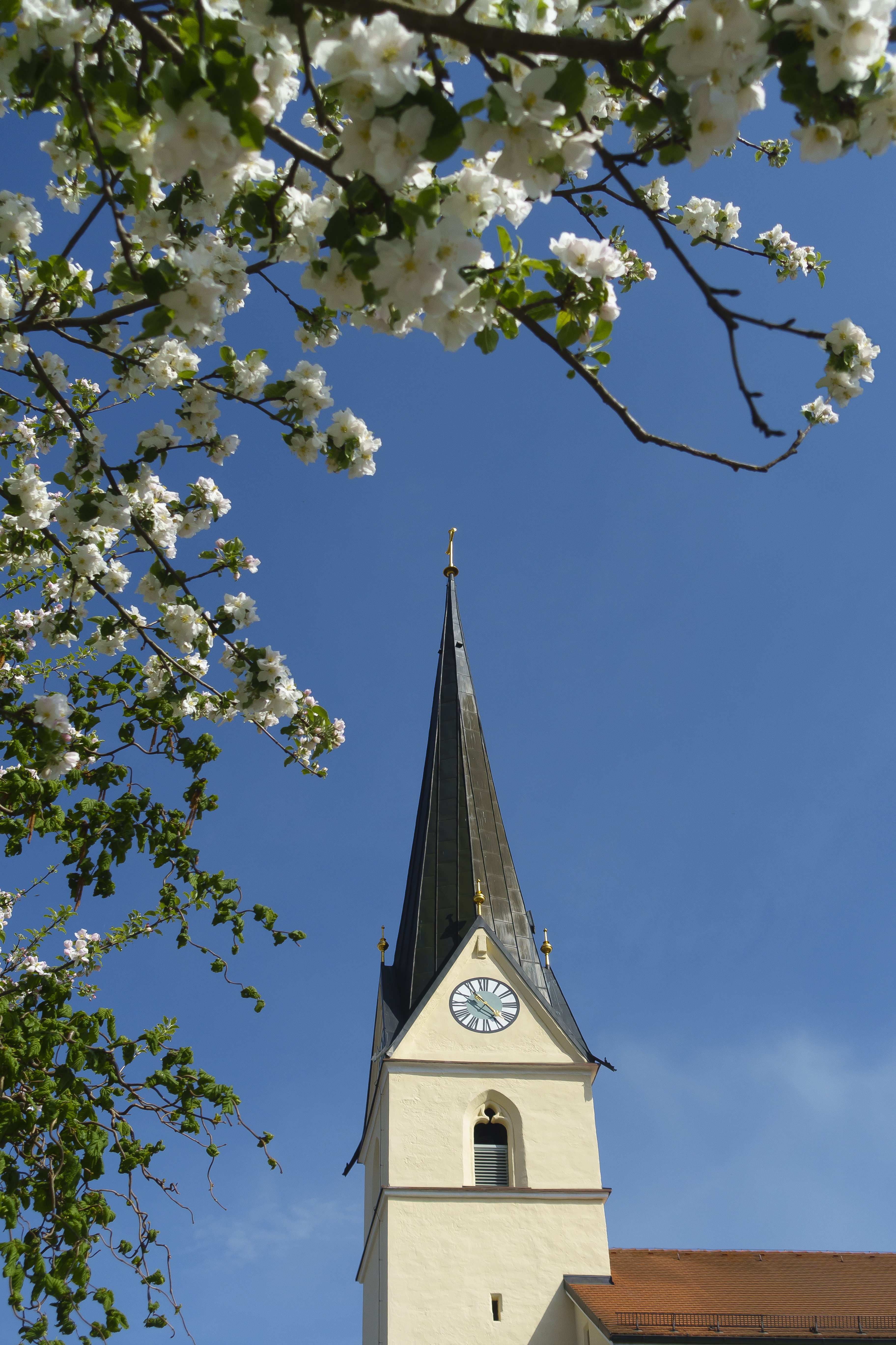Free image/jpeg, Resolution: 3648x5472, File size: 5.26Mb, blue Sky Tree Church picture with tags: sky, tree, church, architecture, village, spire