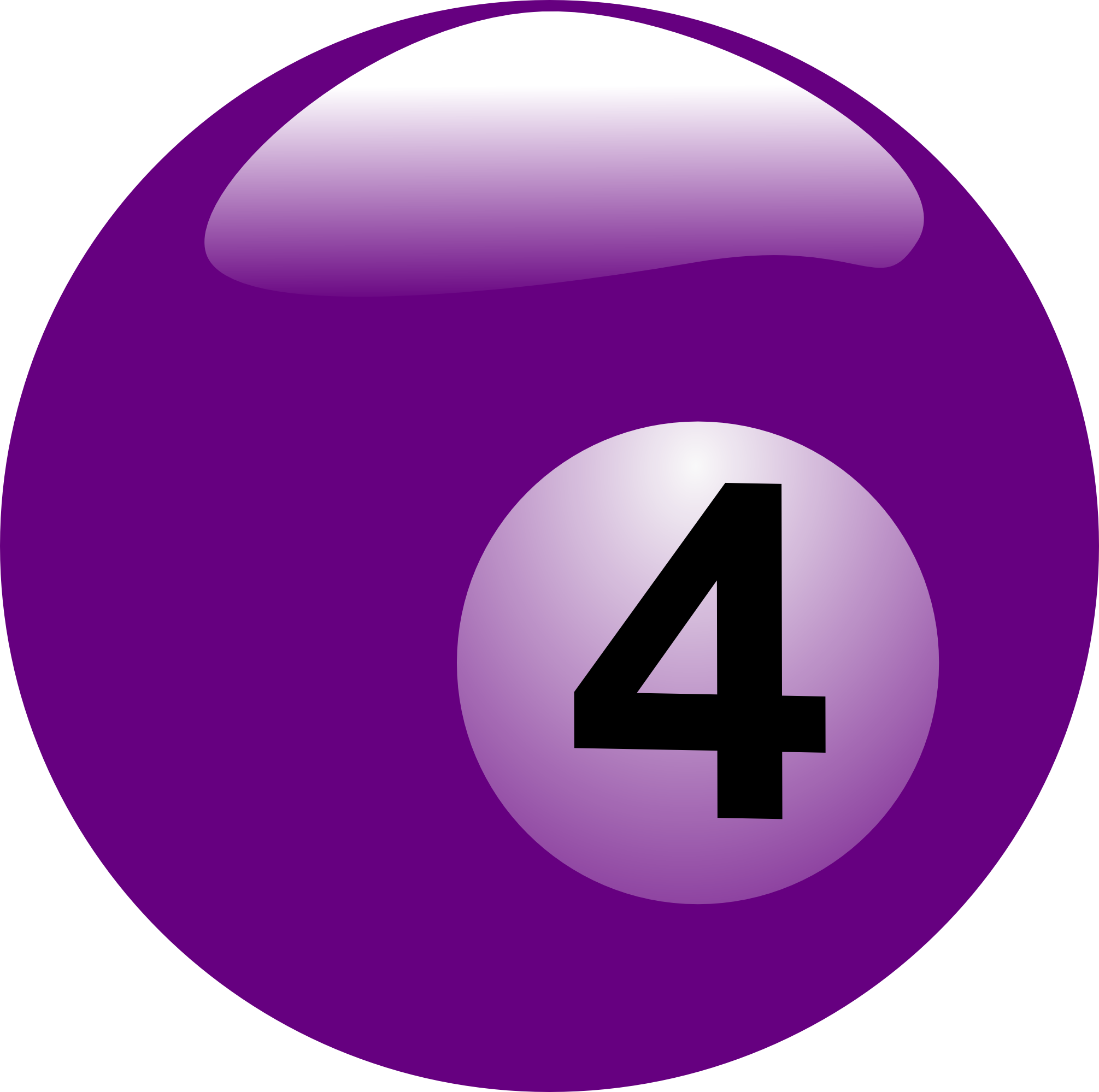 Free image/png, Resolution: 2011x1999, File size: 158Kb, Shiny, purple billiard ball with black number 'four' clipart picture with tags: billiards, billiard ball, game, play, number, 4, purple, black, four, clipart