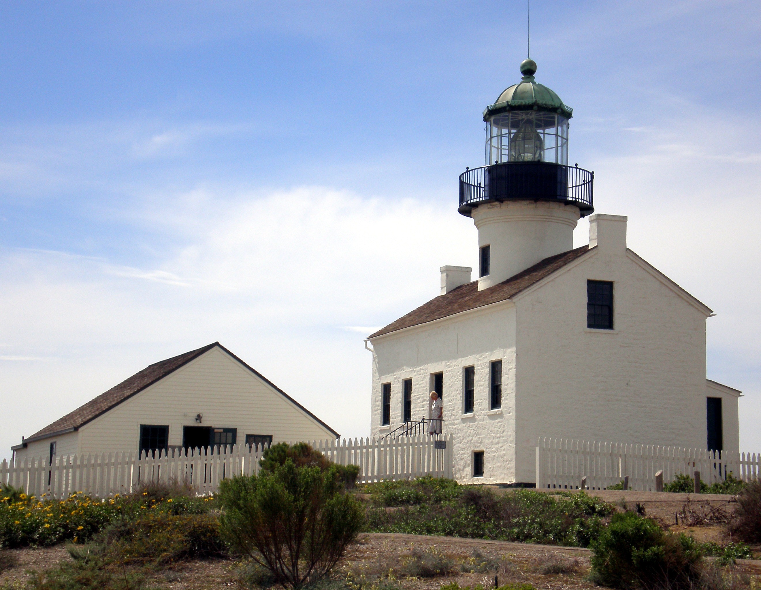 Free image/jpeg, Resolution: 2640x2048, File size: 1015Kb, distant view of the white architecture of the lighthouse picture with tags: lighthouse, sky, clouds, house, blue, white