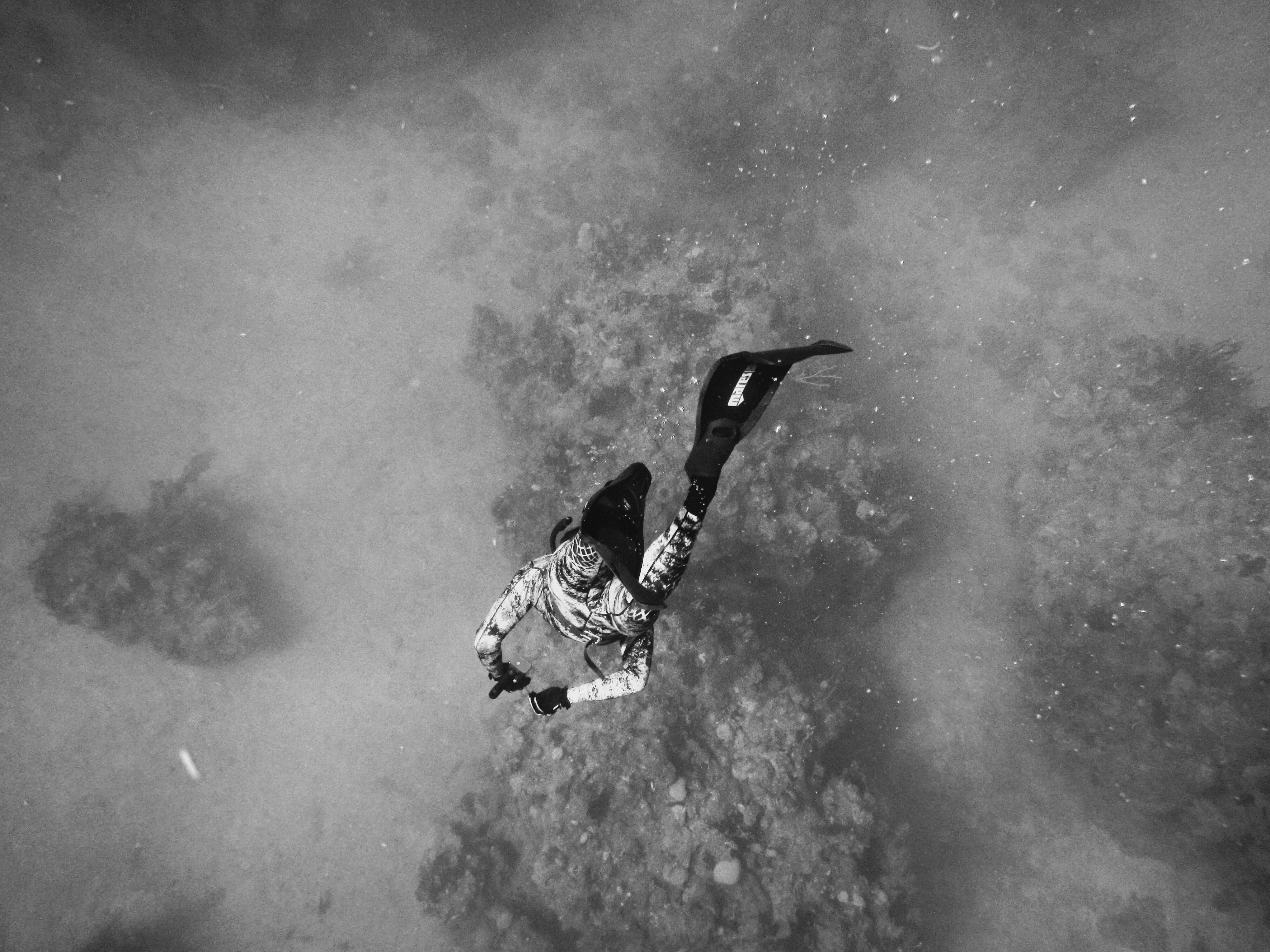 Free image/jpeg, Resolution: 4000x3000, File size: 2.47Mb, black and white photo of a man snorkeling picture with tags: scuba, sea, ocean, adventure, black and white, human
