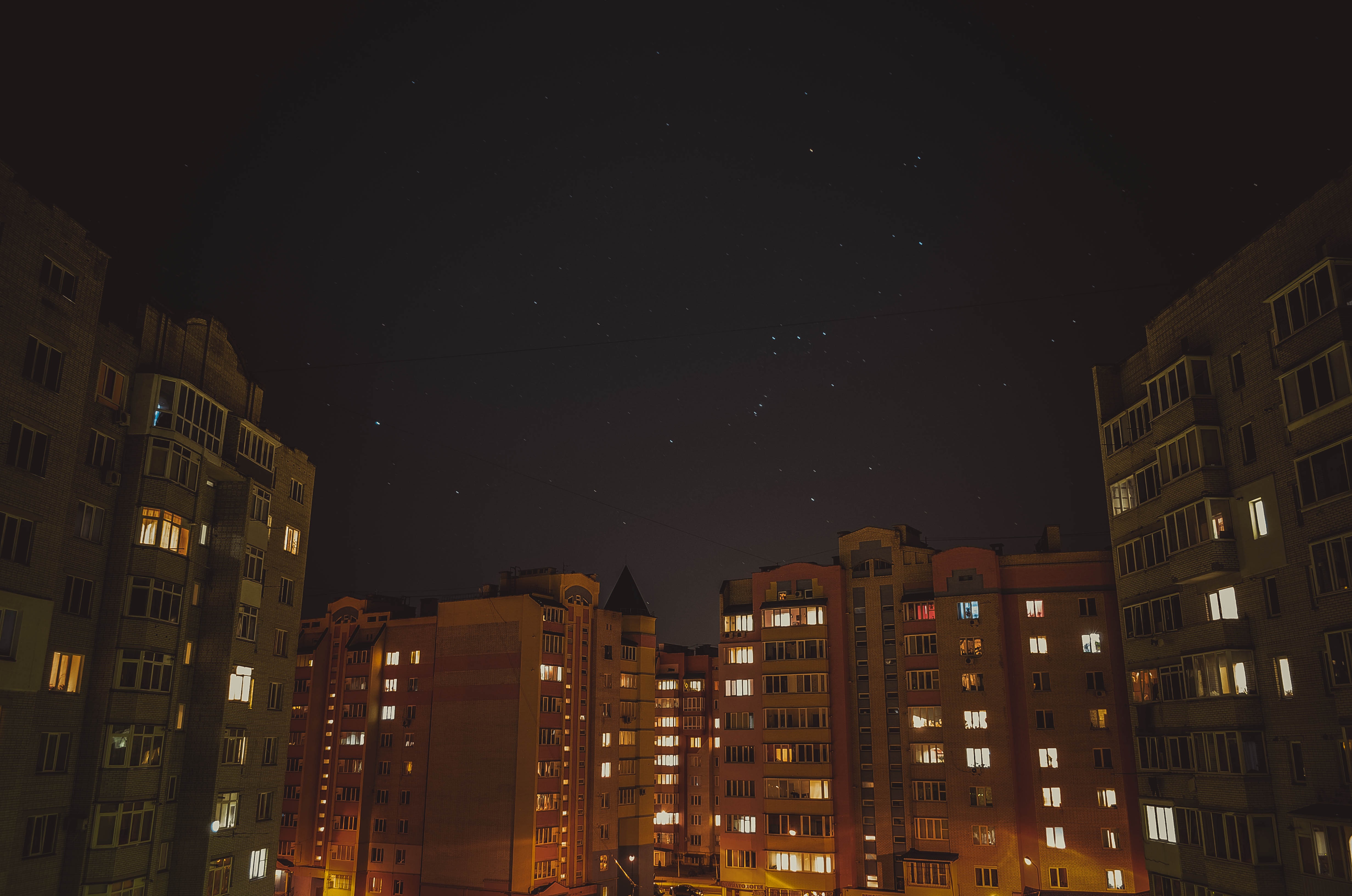 Free image/jpeg, Resolution: 4928x3264, File size: 1.16Mb, light in windows of apartments at night picture with tags: houses, apartments, windows, illuminated, night, dark, evening, stars, modern