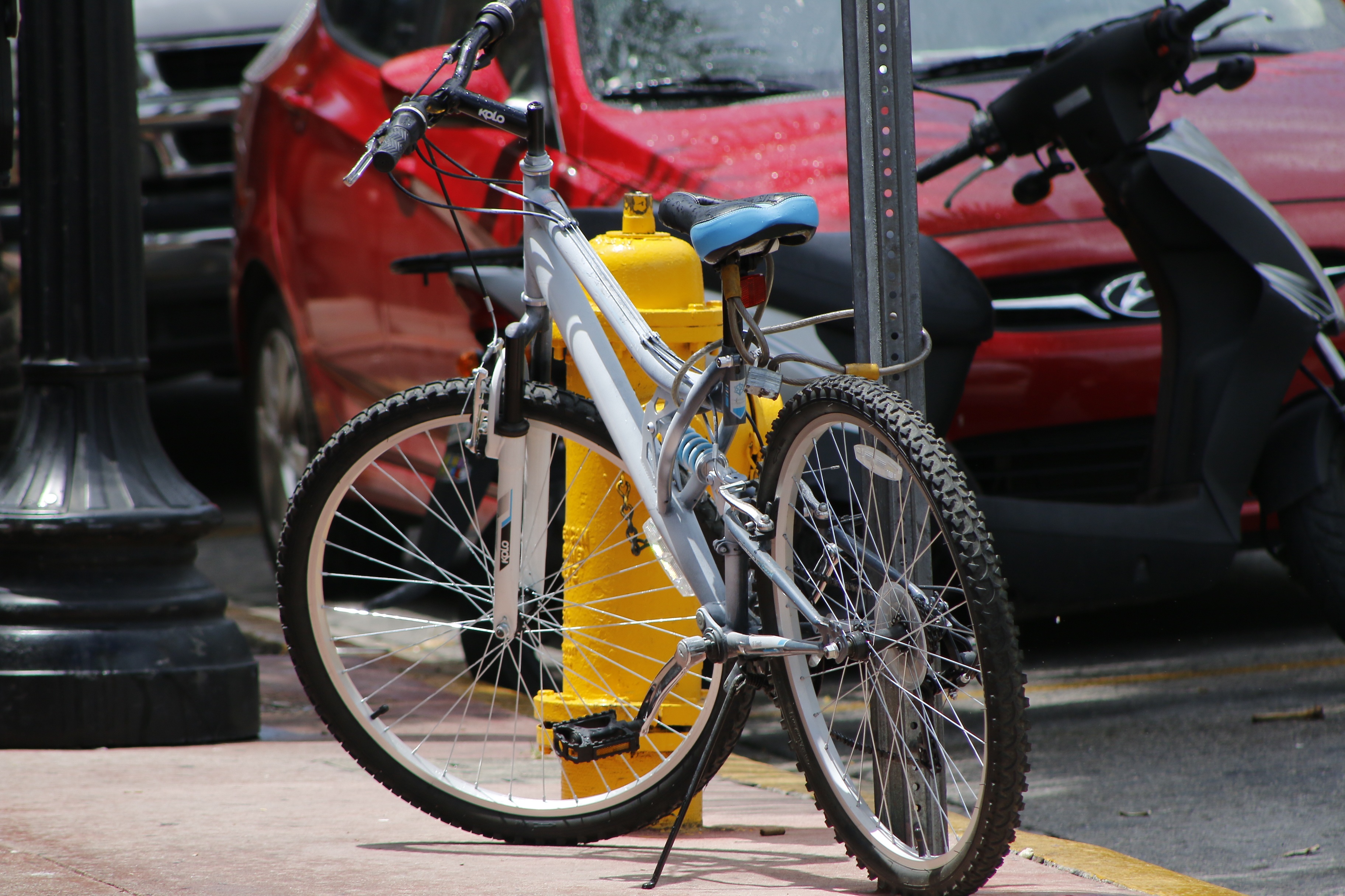 Free image/jpeg, Resolution: 3648x2432, File size: 1.75Mb, Bike Yellow Red picture with tags: bike, yellow, city, streets, car, red