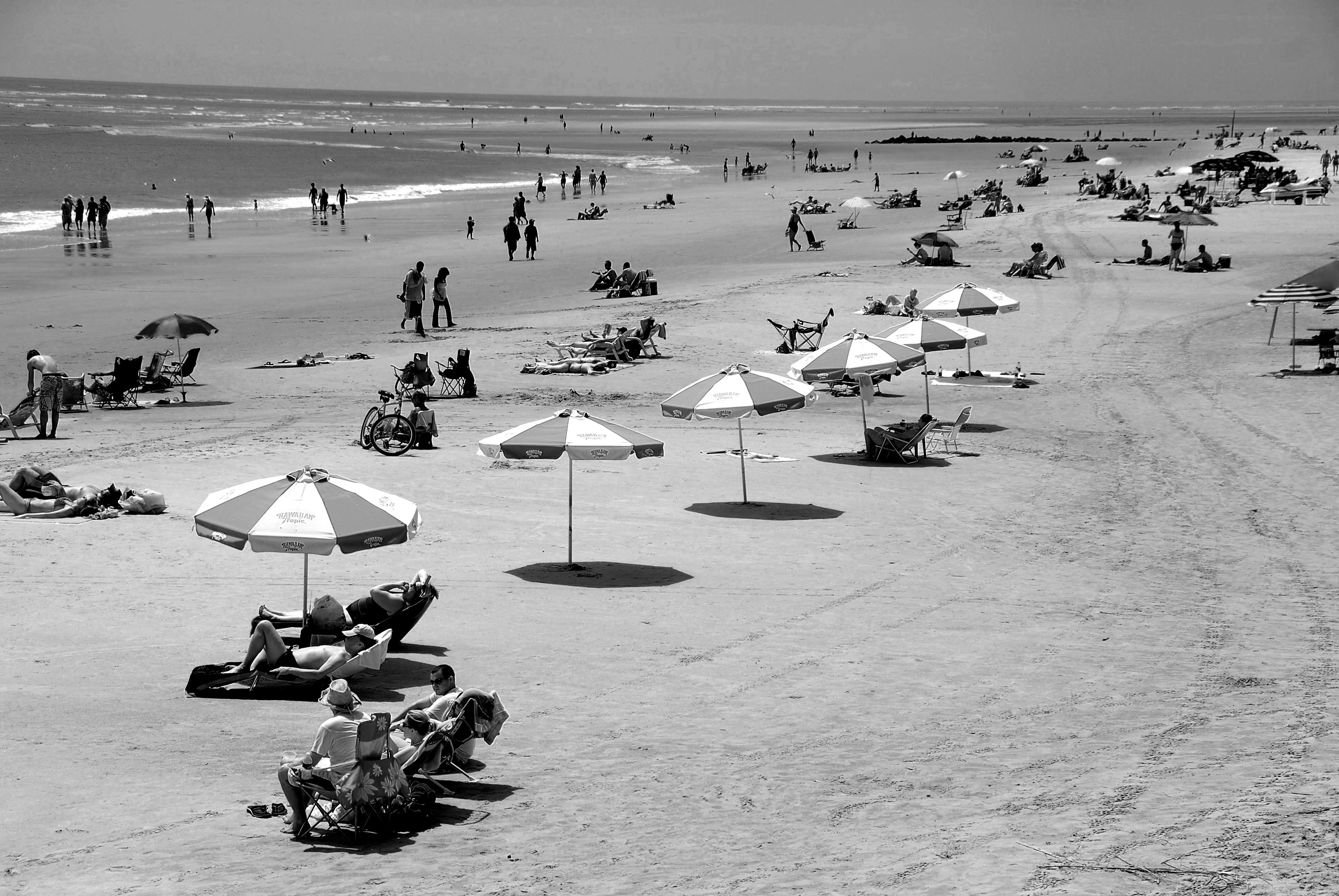 Free image/jpeg, Resolution: 3872x2592, File size: 1.9Mb, Beach Ocean People picture with tags: beach, ocean, people, leisure, vacation, tourism, sky, black and white, monochrome, sea, water, summer, coast