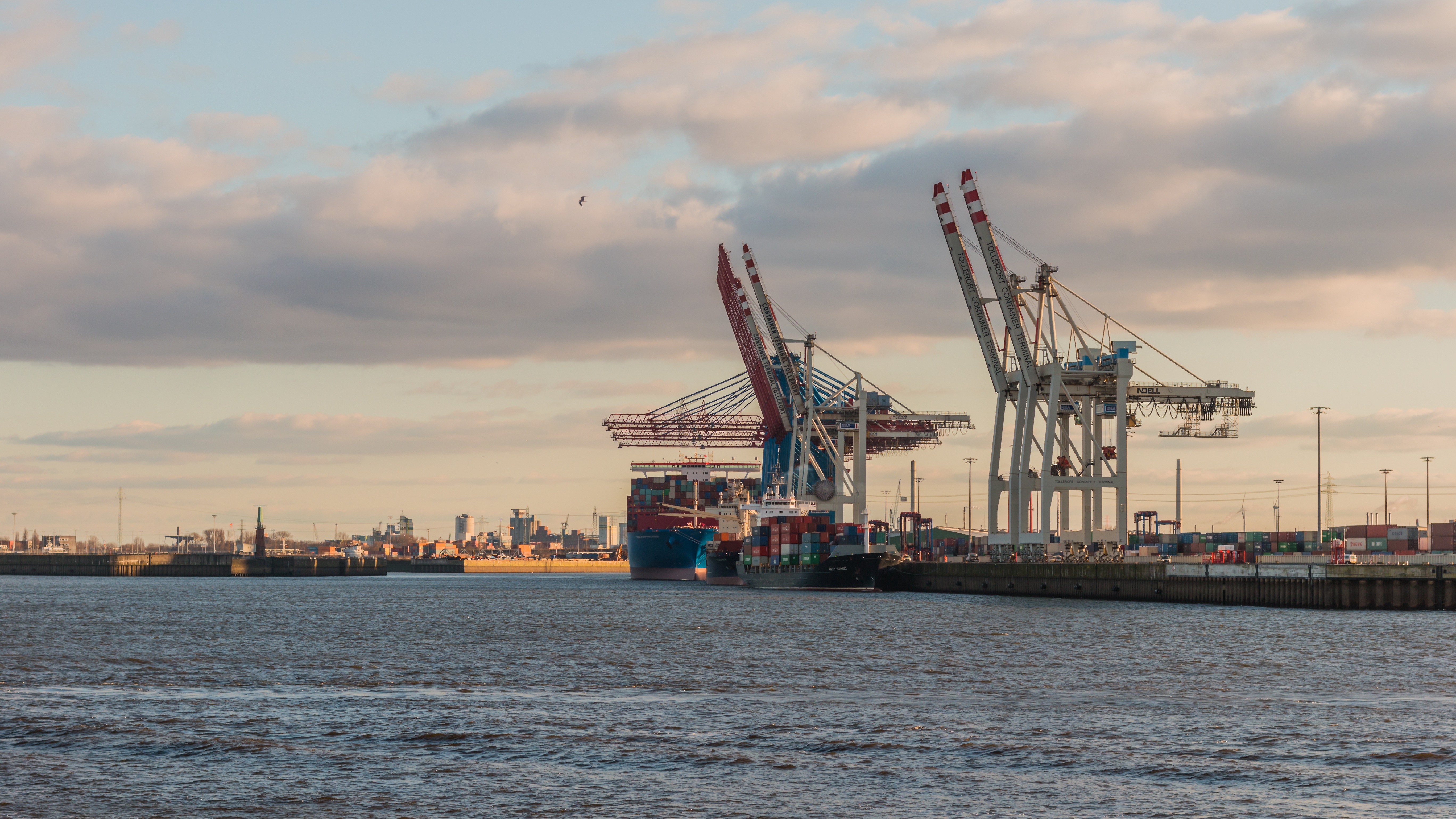 Free image/jpeg, Resolution: 5472x3078, File size: 3.23Mb, Waters Sea Port picture with tags: waters, sea, port, ship, pier, hamburg, cranes, elbe