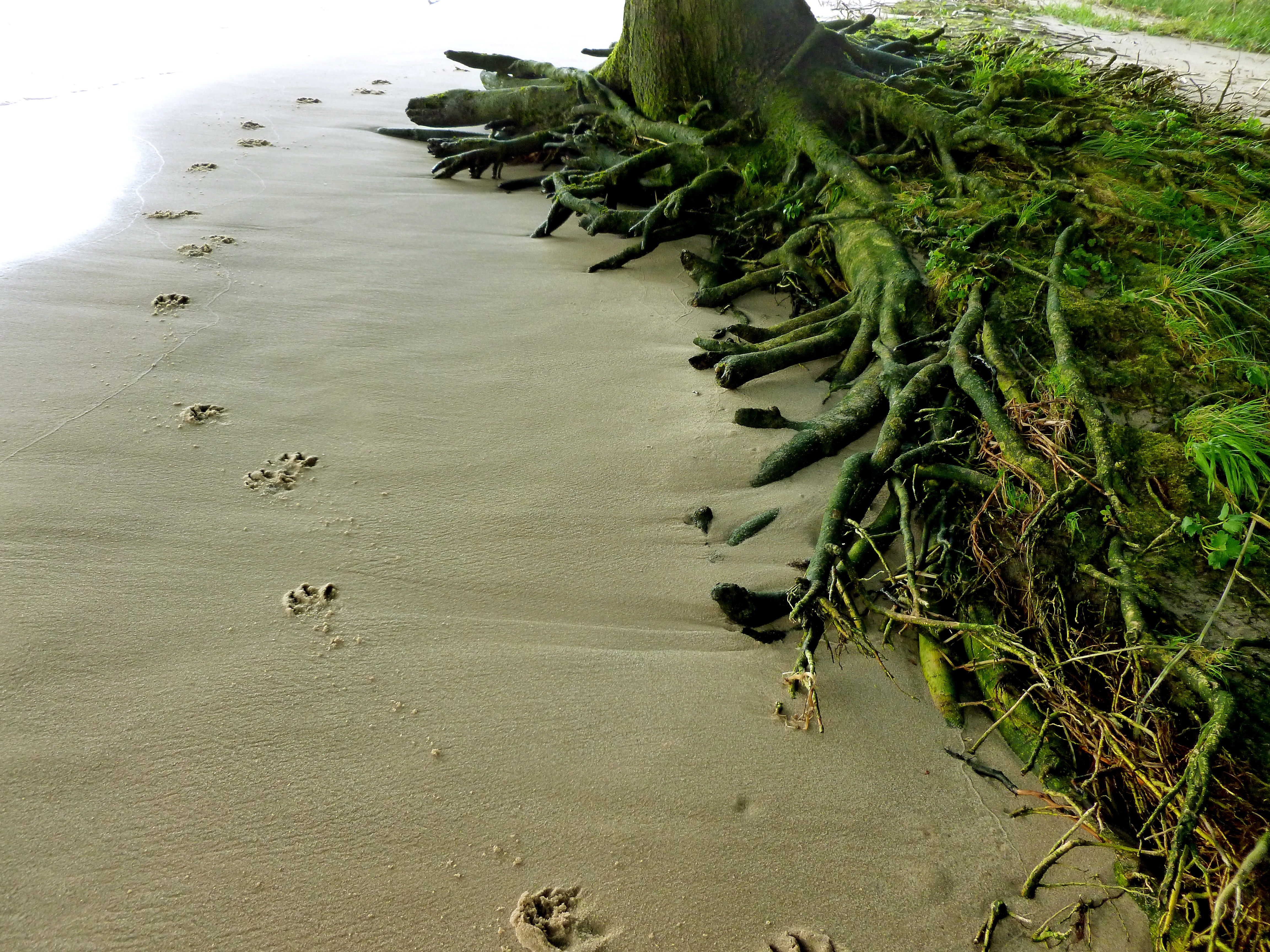 Free image/jpeg, Resolution: 4608x3456, File size: 5.41Mb, Animal Tracks Dog Track picture with tags: animal tracks, dog, sand, traces, tree roots, green, nature, log