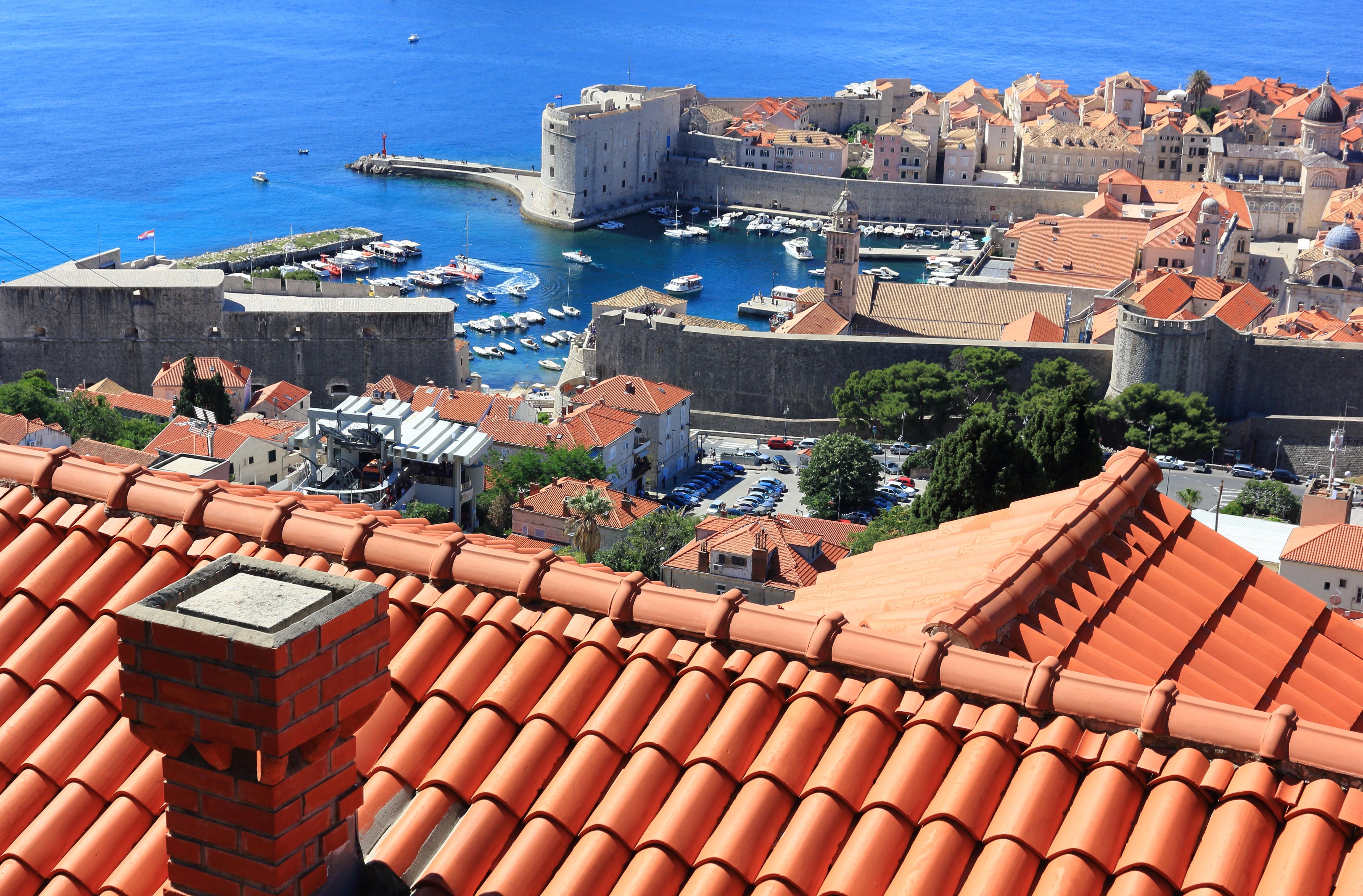 Free image/jpeg, Resolution: 4936x3247, File size: 4.34Mb, orange tile roof picture with tags: roof, tiles, chimney, building, sea, orange