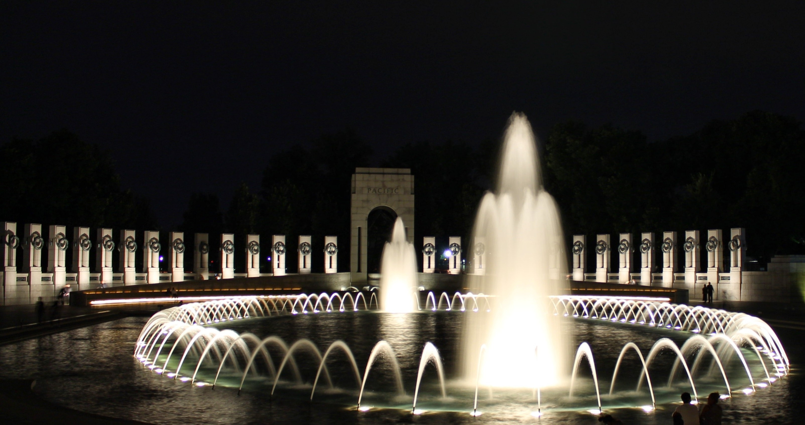Free image/jpeg, Resolution: 3206x1693, File size: 739Kb, fountains at the WWII memorial at night picture with tags: wwii, memorial, world, military, monument, marble