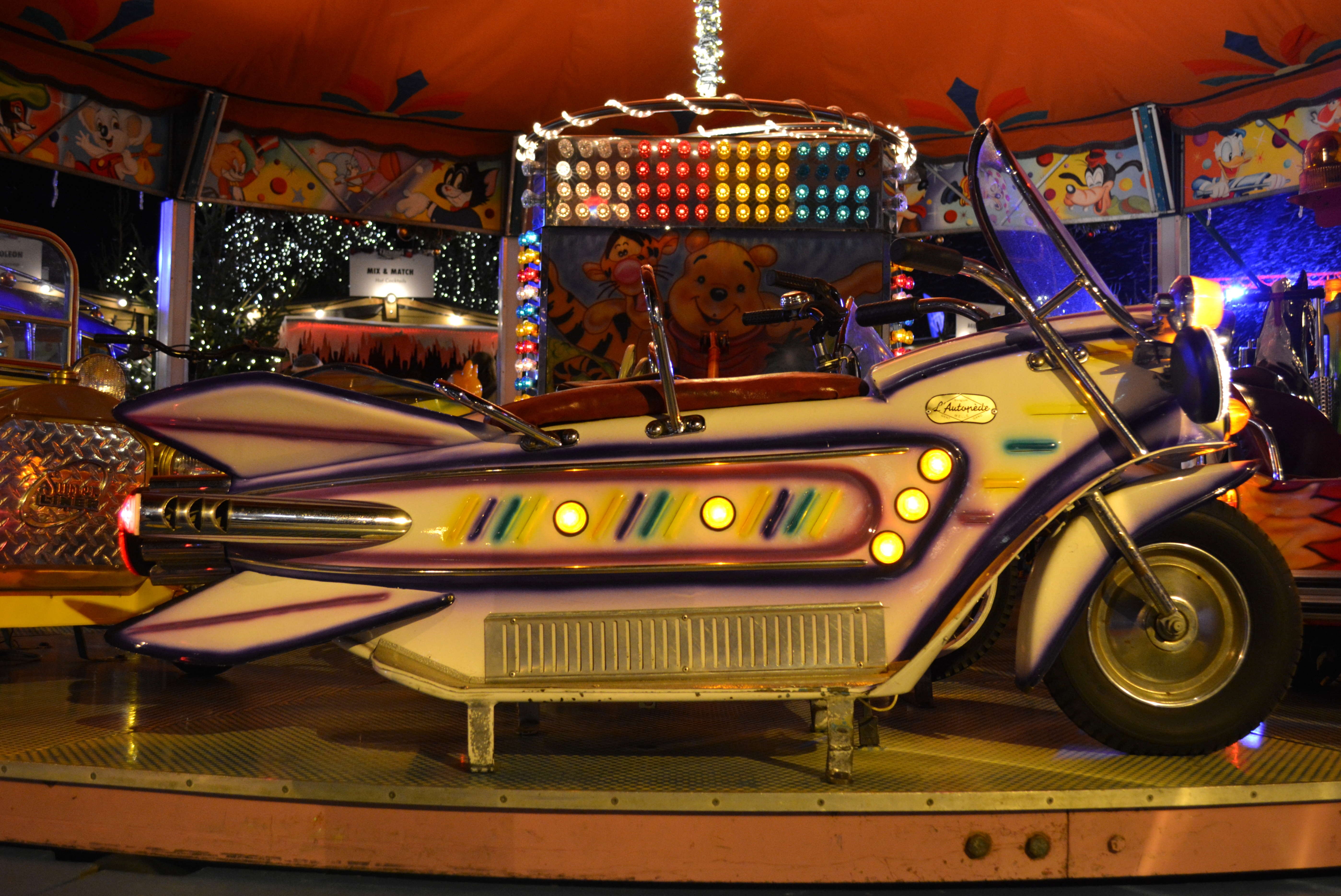 Free image/jpeg, Resolution: 5594x3737, File size: , motorcycle on a horse mill at a fair picture with tags: moto, funfair, horse mill, amusement park, carousel, children