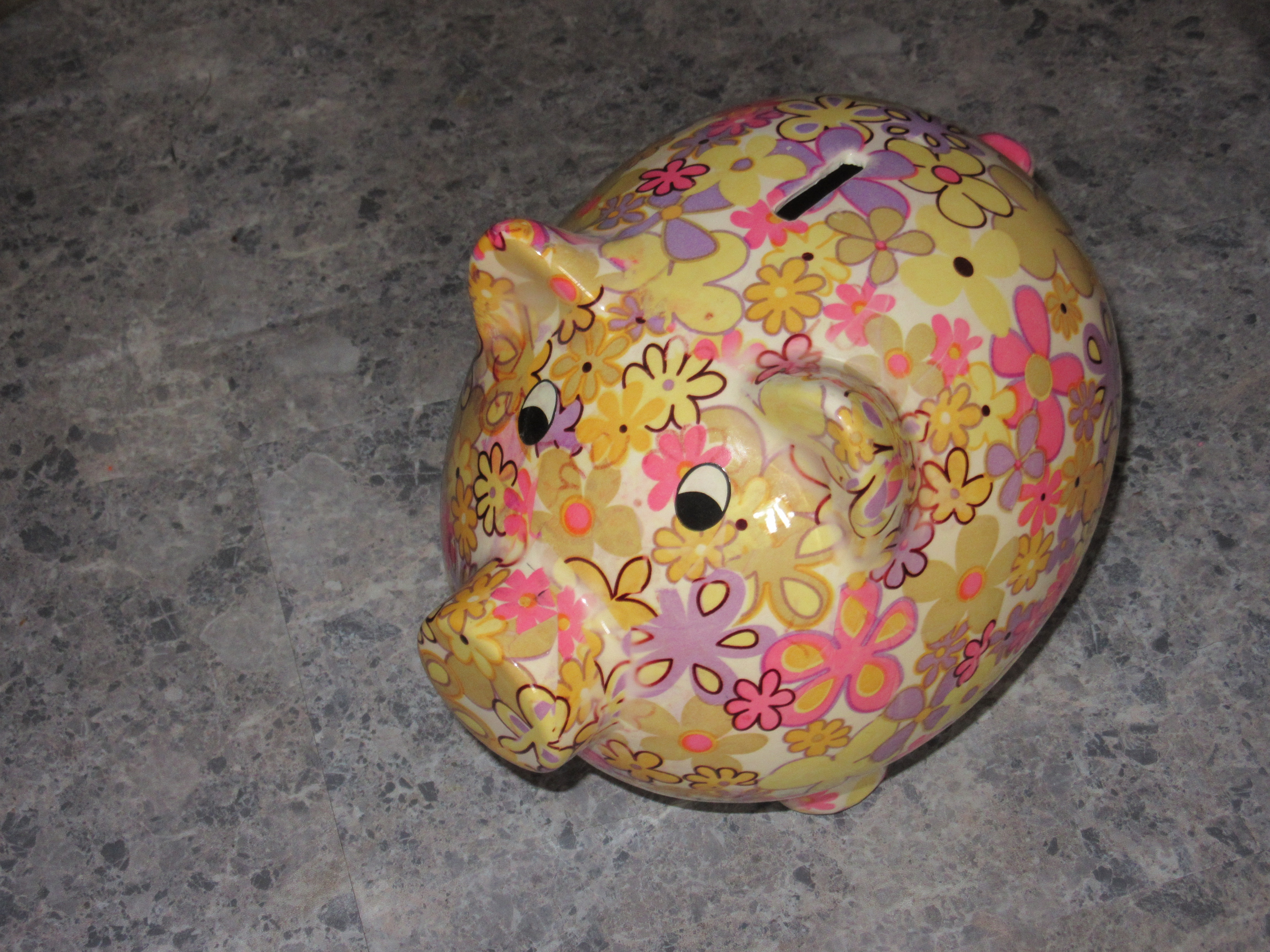 Free image/jpeg, Resolution: 4608x3456, File size: , Piggy Bank, Colorful figurine with floral print picture with tags: piggy bank, colorful, pig, figurine, floral, vintage