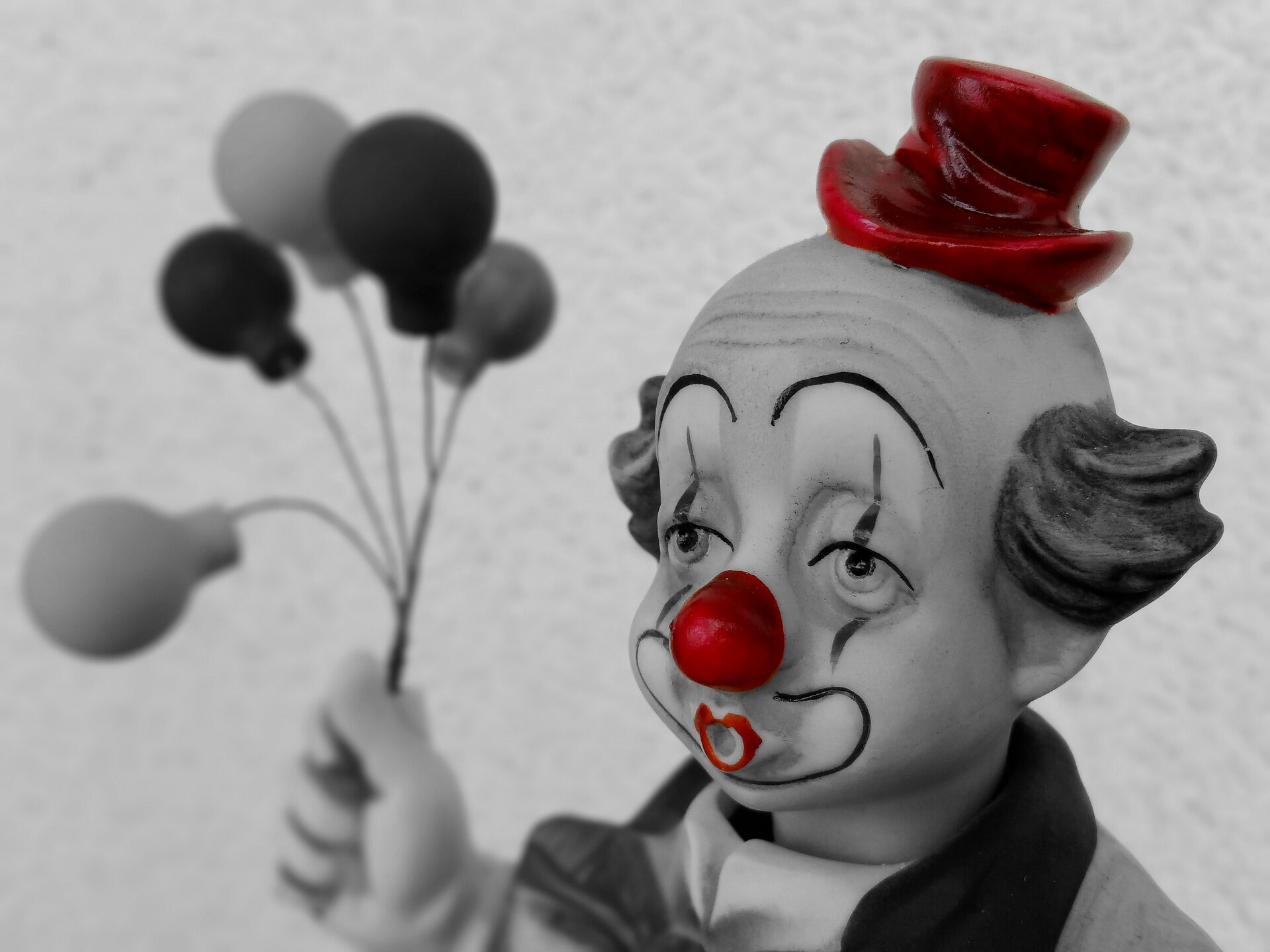 Free image/jpeg, Resolution: 1920x1440, File size: , Statue of a clown with balloons picture with tags: clown, funny, statuette, ballons, cheerful, red, figurine