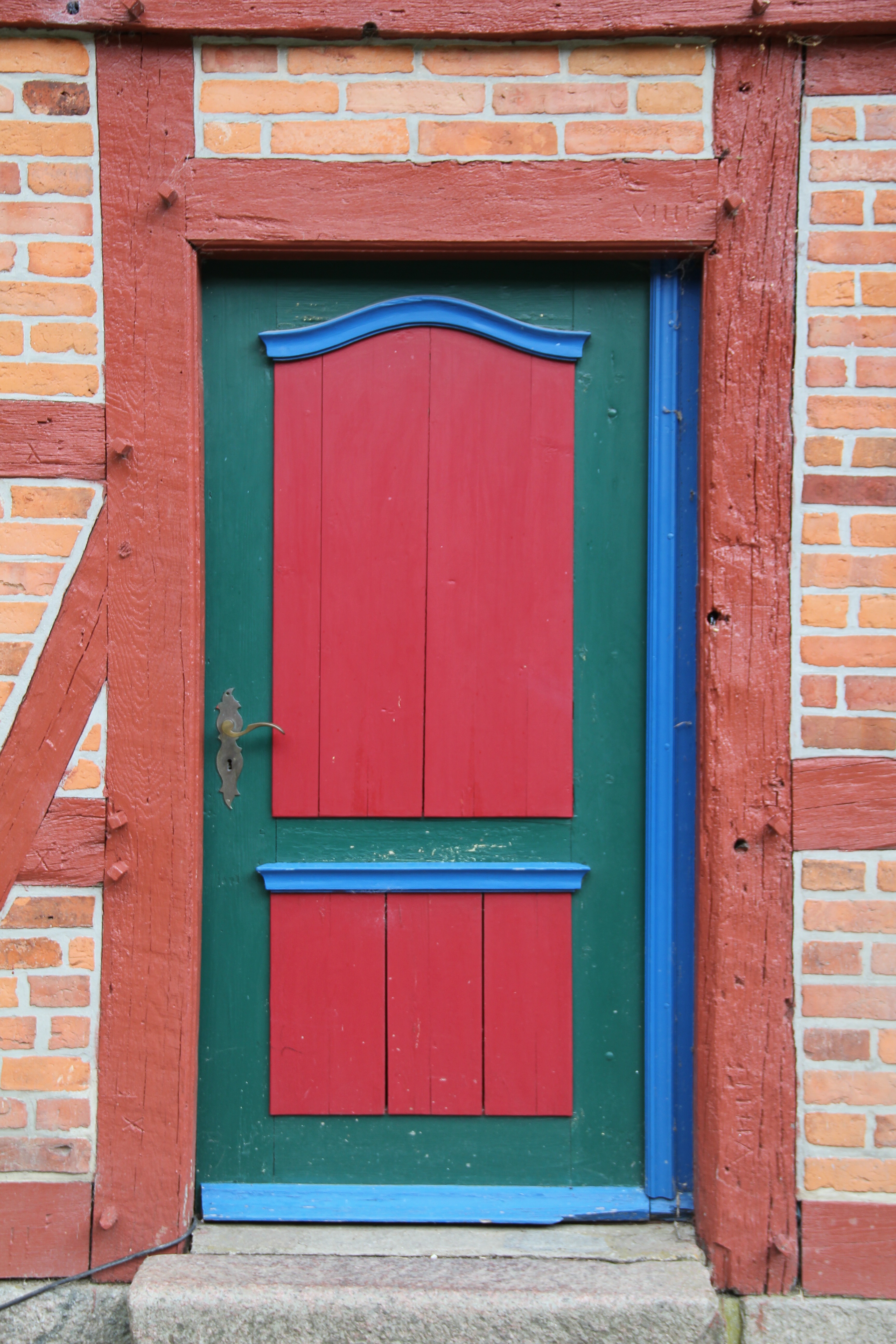 Free image/jpeg, Resolution: 3456x5184, File size: 3.96Mb, red brick wall colored wood door picture with tags: door, input, entrance, wooden, red green