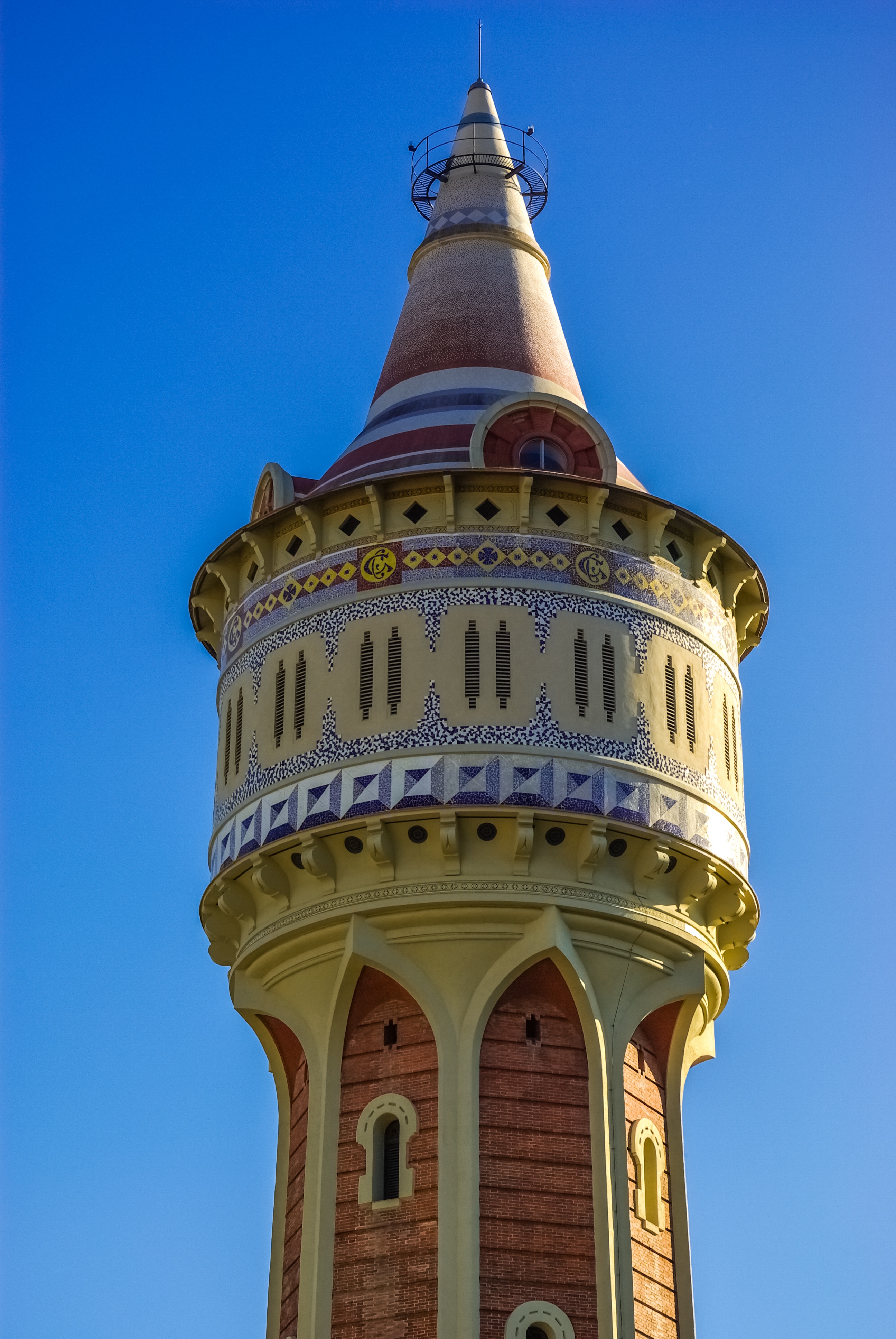 Free image/jpeg, Resolution: 2592x3872, File size: 2.05Mb, tower in barcelona against the blue sky picture with tags: barcelona, tower, mosaic, architecture, spanish