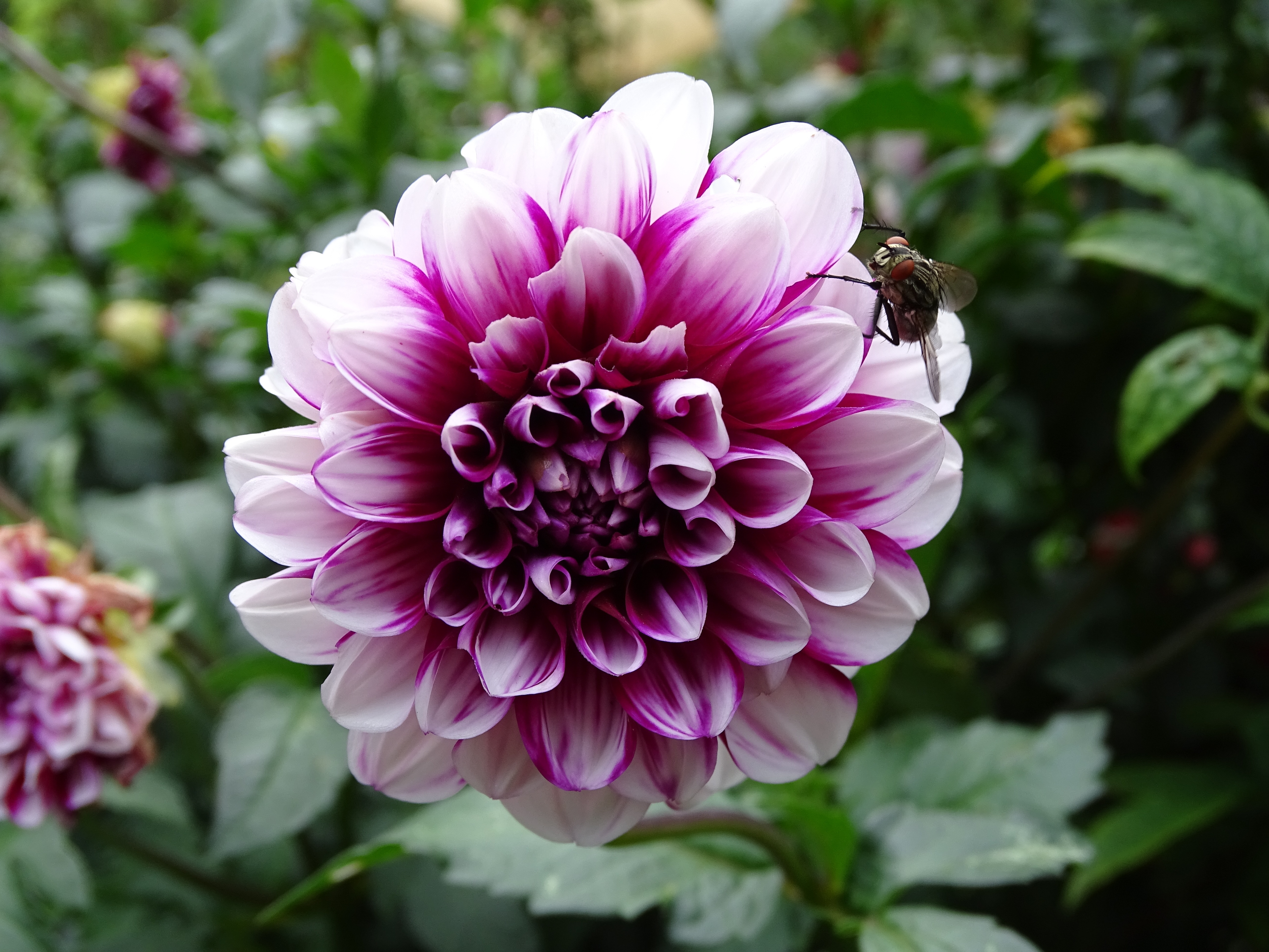 Free image/jpeg, Resolution: 5184x3888, File size: 4.01Mb, colored beautiful flower with a wasp picture with tags: fly, dahlia, flowers, petals, late, summer