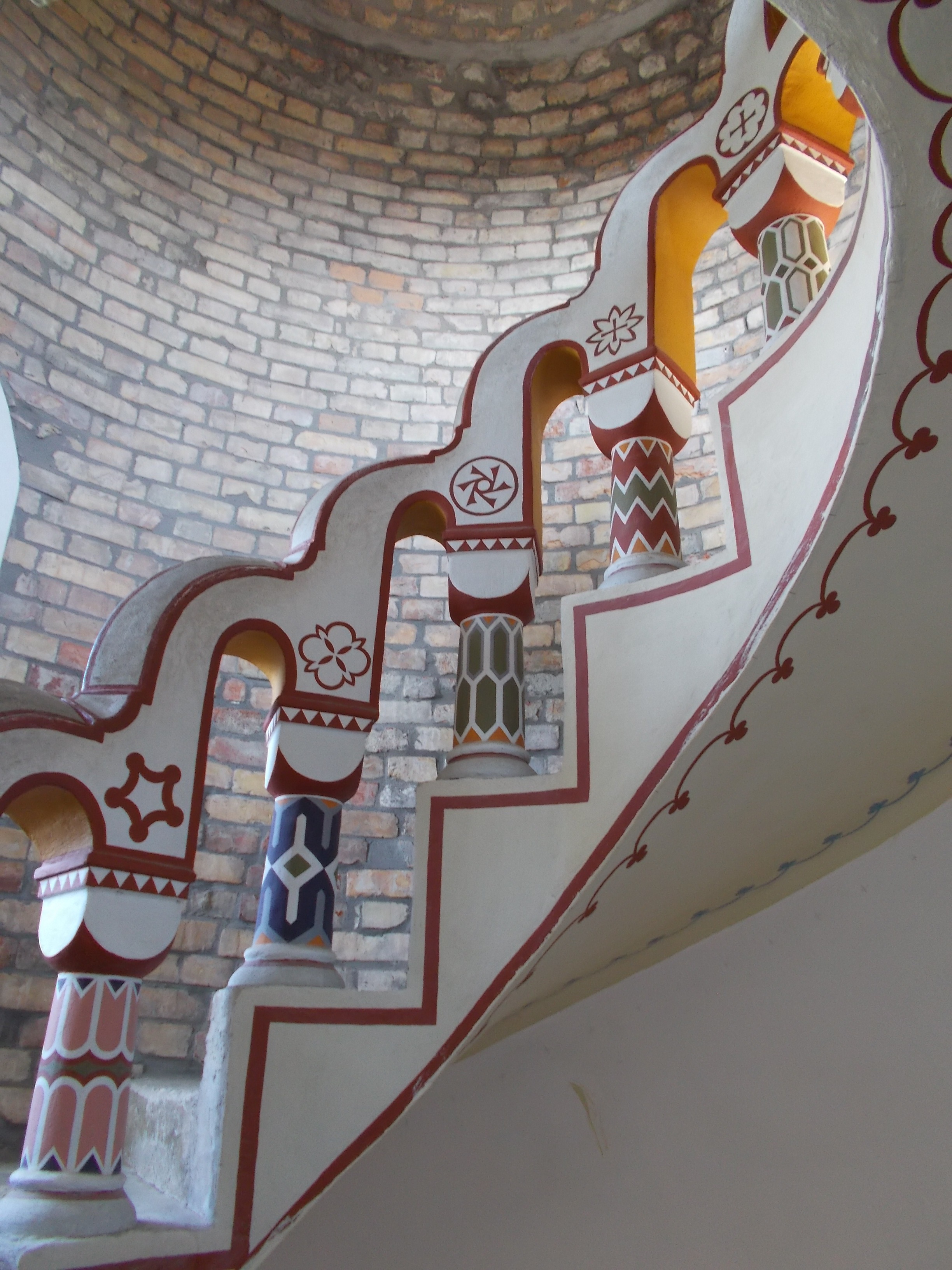 Free image/jpeg, Resolution: 2448x3264, File size: 1.59Mb, Beautiful and colorful, ornamental, spiral staircase in the castle in Székesfehérvár, Hungary picture with tags: bory-city, hungary, castle, building, architecture, spiral staircase, beautiful, székesfehérvár, colorful, ornamental
