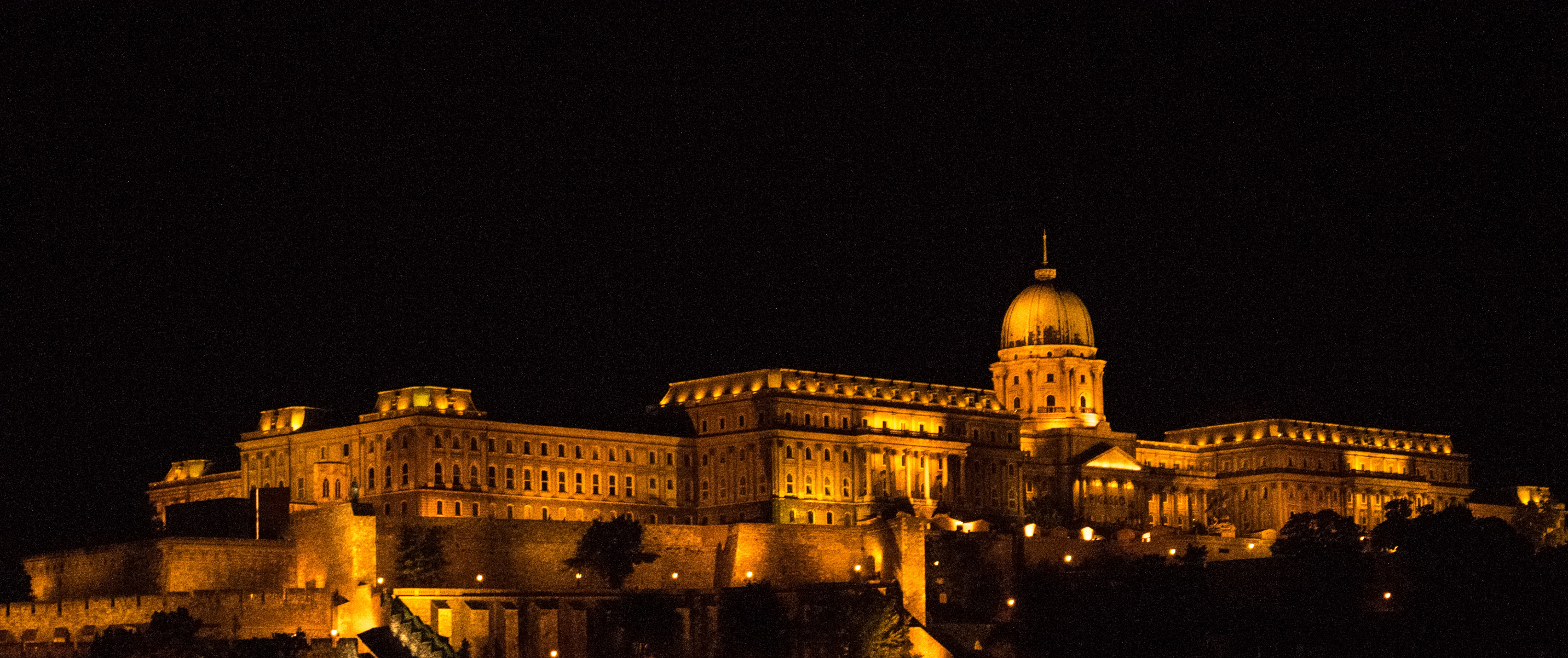 Free image/jpeg, Resolution: 6000x2518, File size: 6.08Mb, night photo of illuminated historic building in Budapest, Hungary picture with tags: hungary, budapest, architecture, old, city, light, memorial, monument
