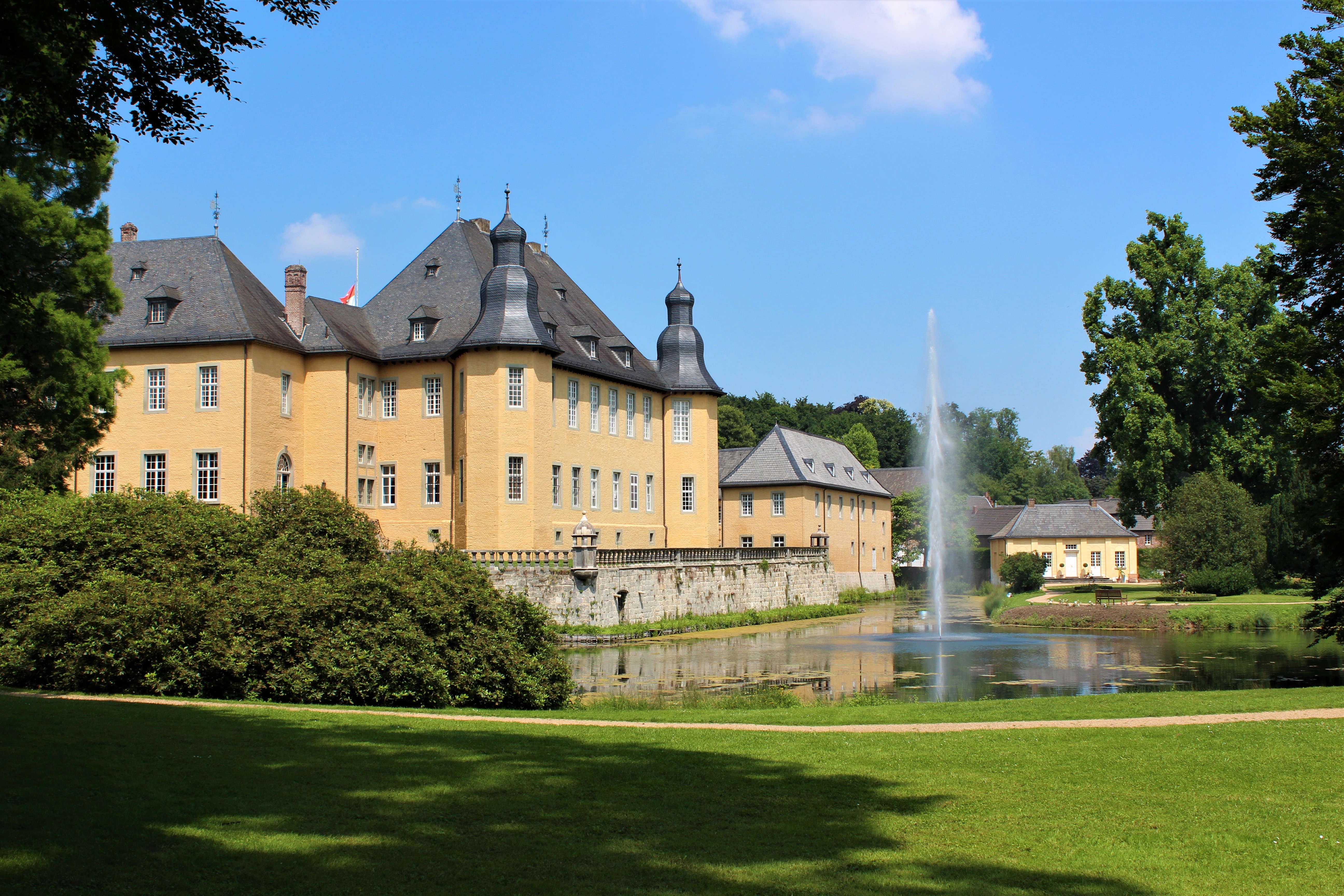 Free image/jpeg, Resolution: 5184x3456, File size: , Rush House Grass picture with tags: rush, house, grass, schloss dyck, moated castle, moat, fountain