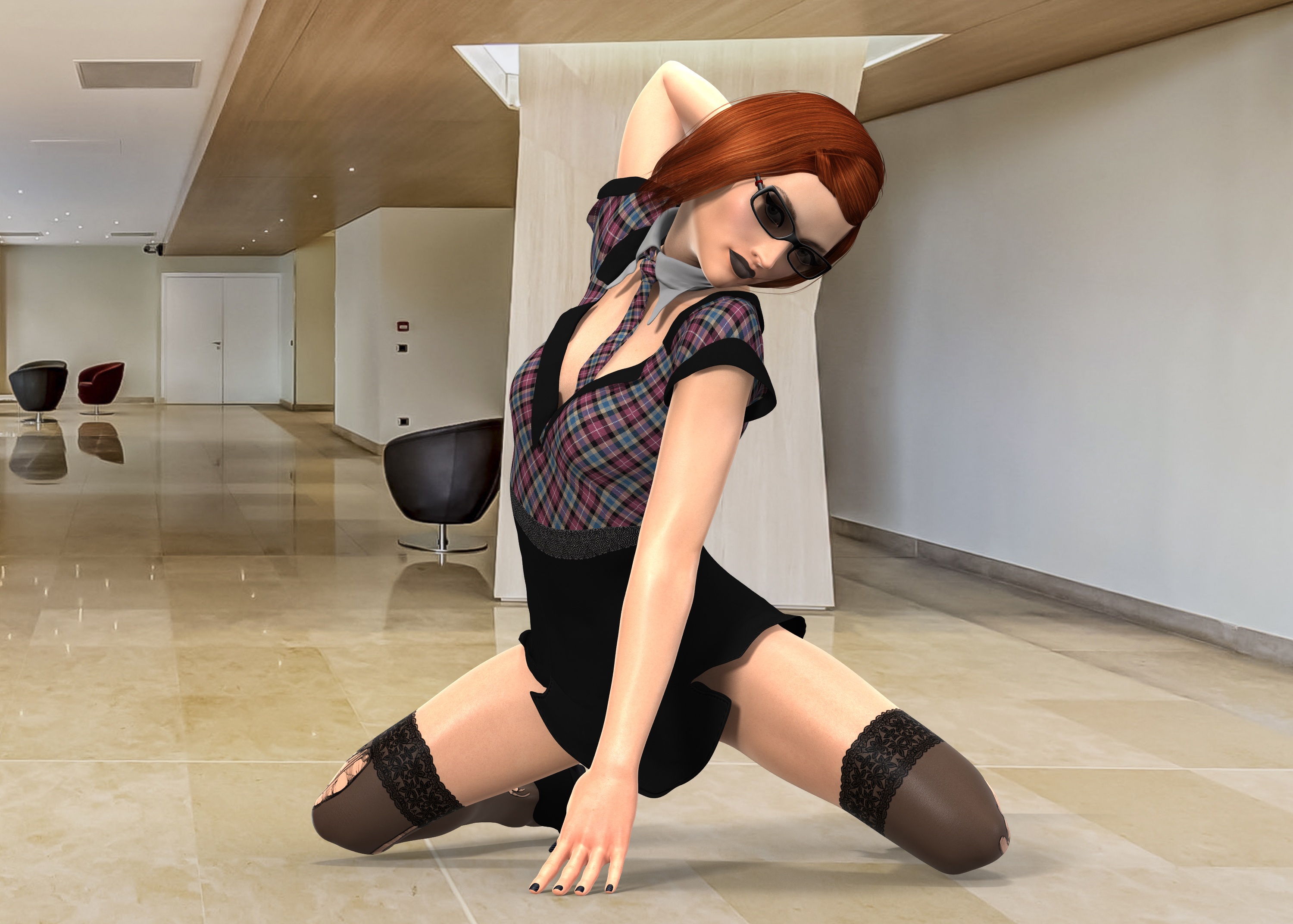 Free image/jpeg, Resolution: 3000x2144, File size: , attractive young woman kneeling on floor, 3d render picture with tags: kneeling, glasses, beauty, sensual, posing, 3d, render, woman