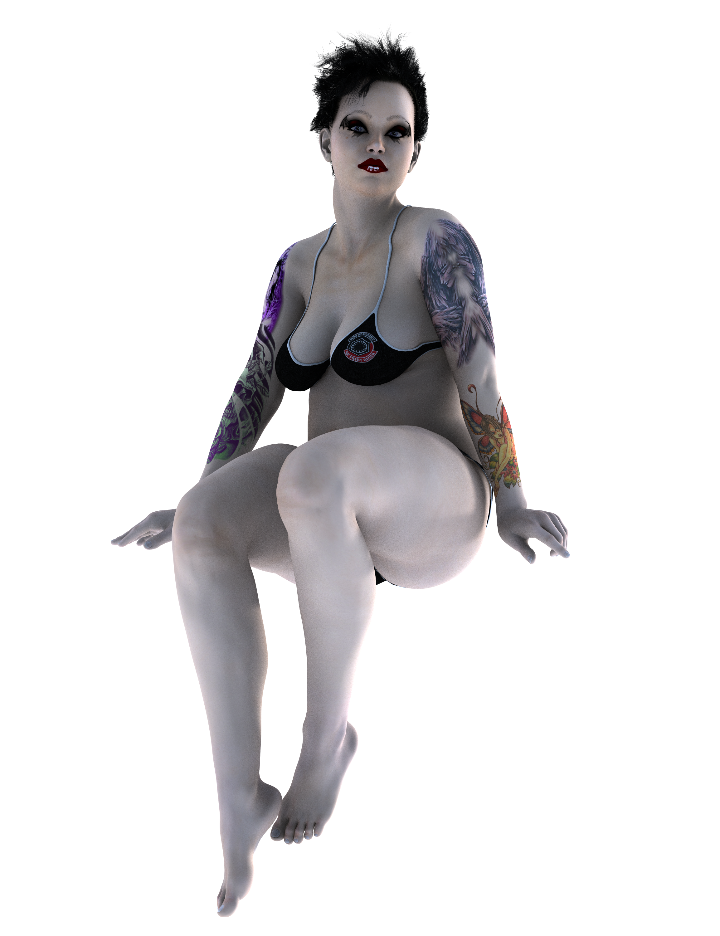 Free image/png, Resolution: 2308x3000, File size: , 3d model of the sitting woman in underwear, at white background, clipart picture with tags: tattoo, lady, pose, woman, girl, tattoos, sitting, white background, clipart