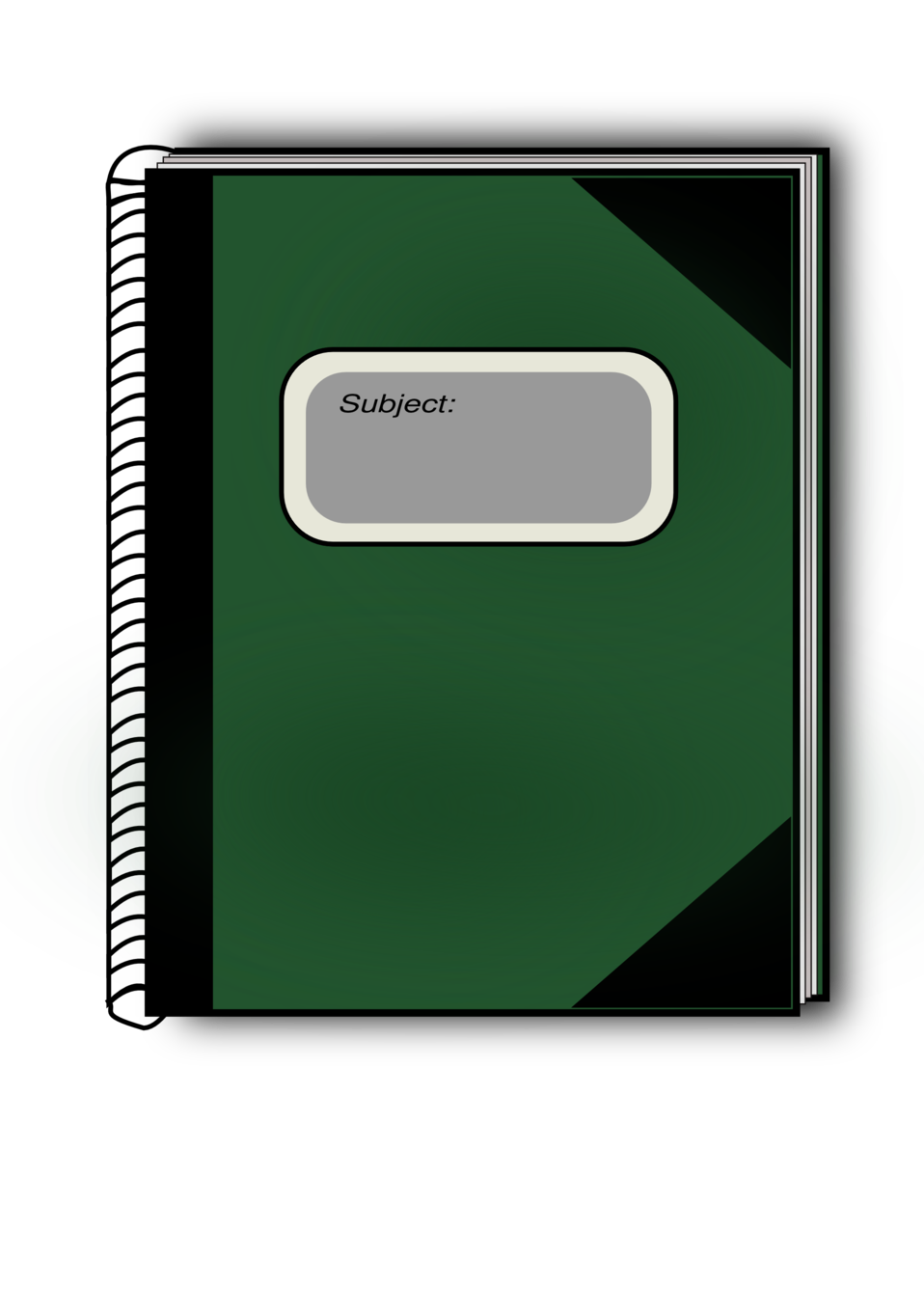 Free image/png, Resolution: 958x1361, File size: 239Kb, Public Domain Books drawing picture with tags: green, black, notebook, spiral, white background