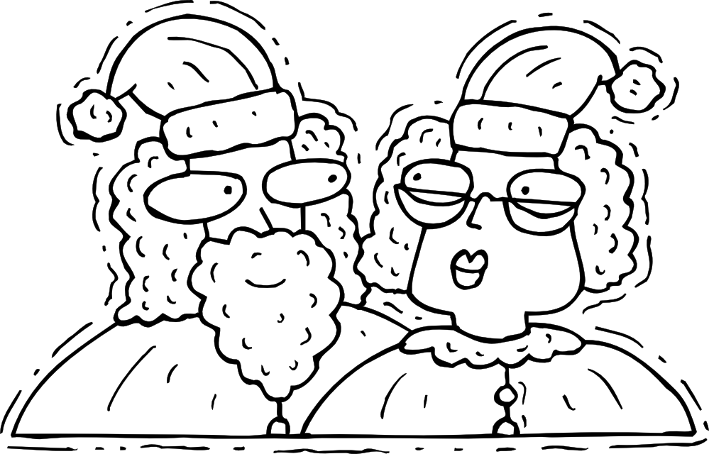 Free image/png, Resolution: 999x640, File size: 163Kb, santa claus with his wife as a black and white graphic illustration picture with tags: santa, saying, oops, clip art