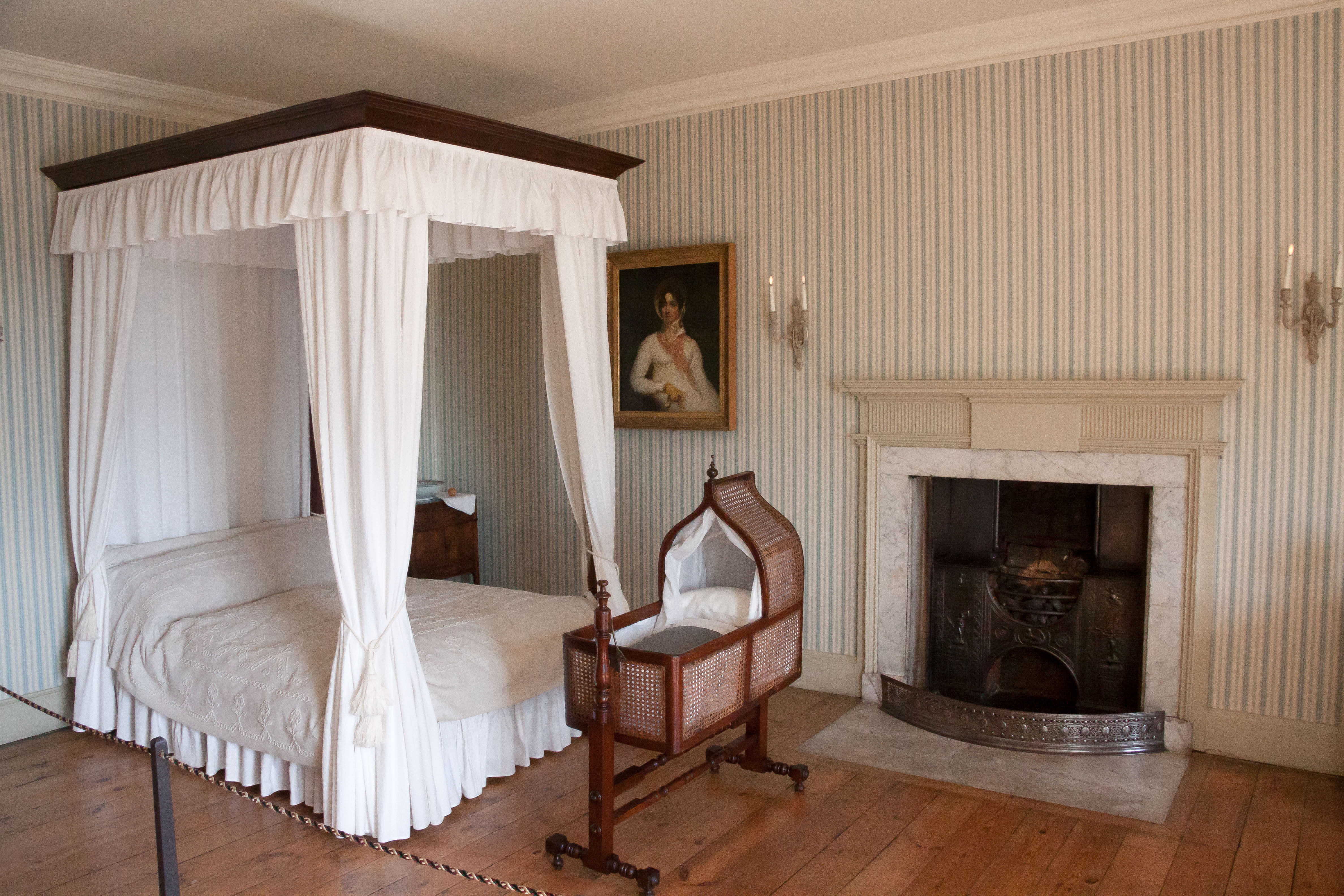 Free image/jpeg, Resolution: 4752x3168, File size: 4.57Mb, bedroom with a double bed and pram picture with tags: bedroom, home, marriage bed, children weighing, antique, kaminofen