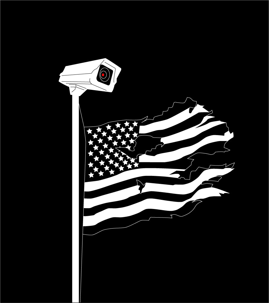 Black and white tattered american flag drawing