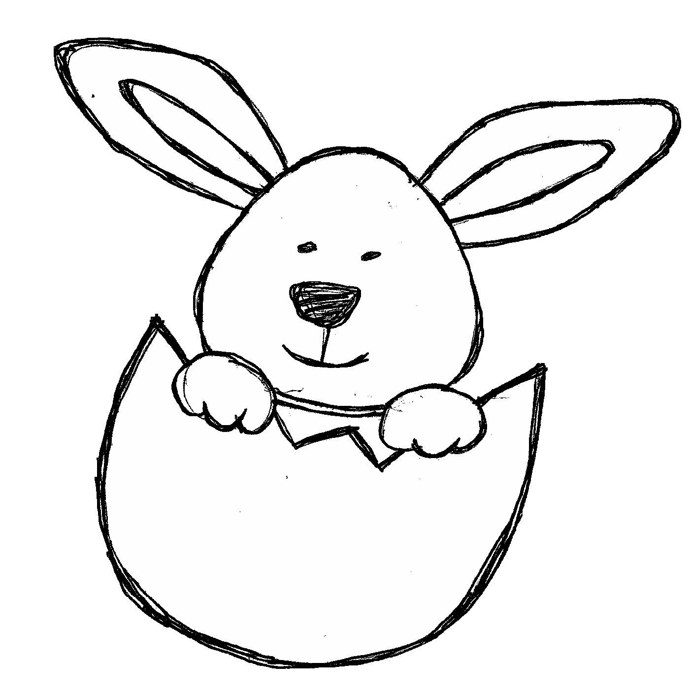 Free image/png, Resolution: 1403x1409, File size: 96Kb, rabbit looking out eggshell, hand drawing picture with tags: rabbit, looking, out, eggshell, hand, drawing