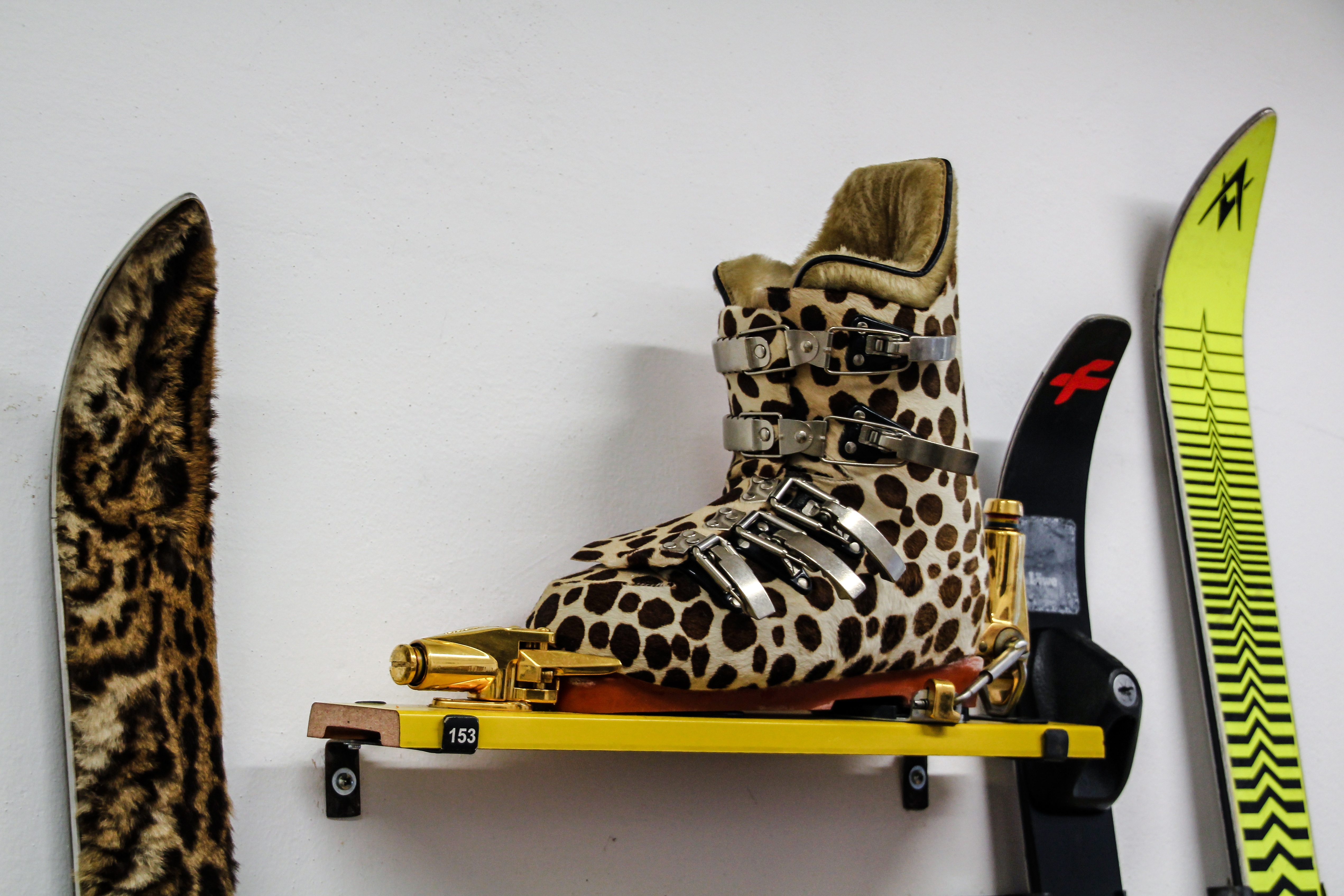 Leopard printed ski boots and ski