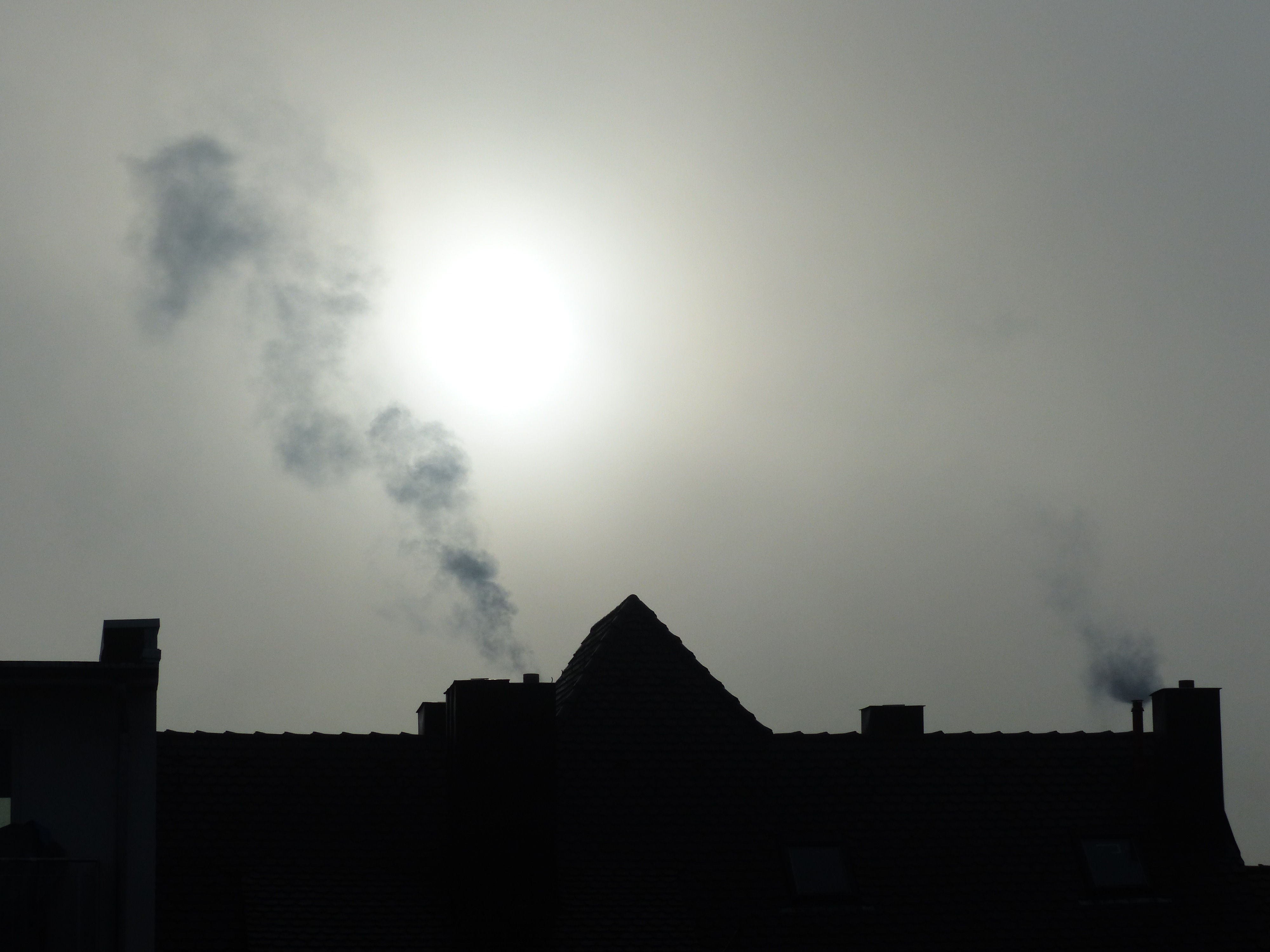 Free image/jpeg, Resolution: 4000x3000, File size: 1.11Mb, smoke over the house in the evening picture with tags: smoke, slurry, blacked out, homes, city, energy, darkness