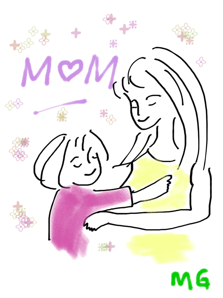 Free image/png, Resolution: 768x1024, File size: 446Kb, Mom Daughter Cartoon drawing picture with tags: mom, daughter, cartoon, hug, mg, colors