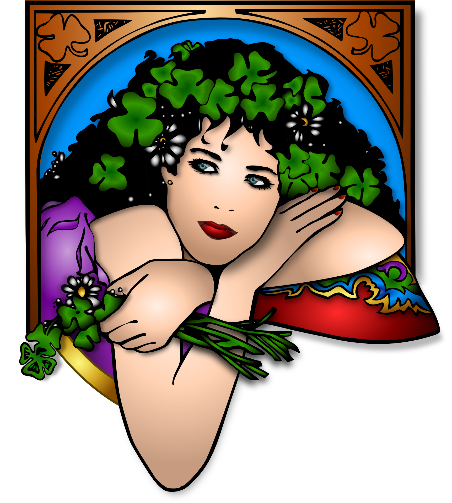 Free image/png, Resolution: 1724x1920, File size: 1.09Mb, bright image of an Irish girl with a wreath on her head picture with tags: woman, girl, ireland, irish, patrick, clover