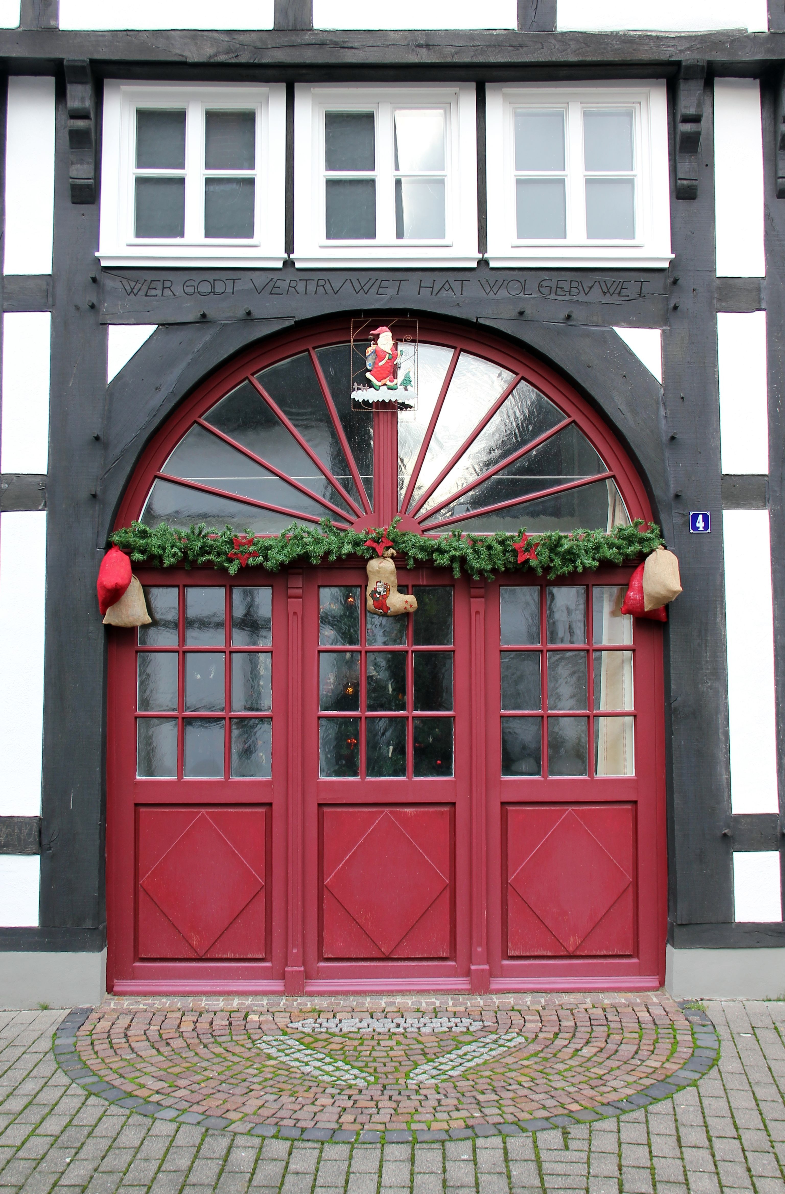 Free image/jpeg, Resolution: 3073x4671, File size: 1.85Mb, Christmas decoration on the front door picture with tags: building, truss, advent, christmas