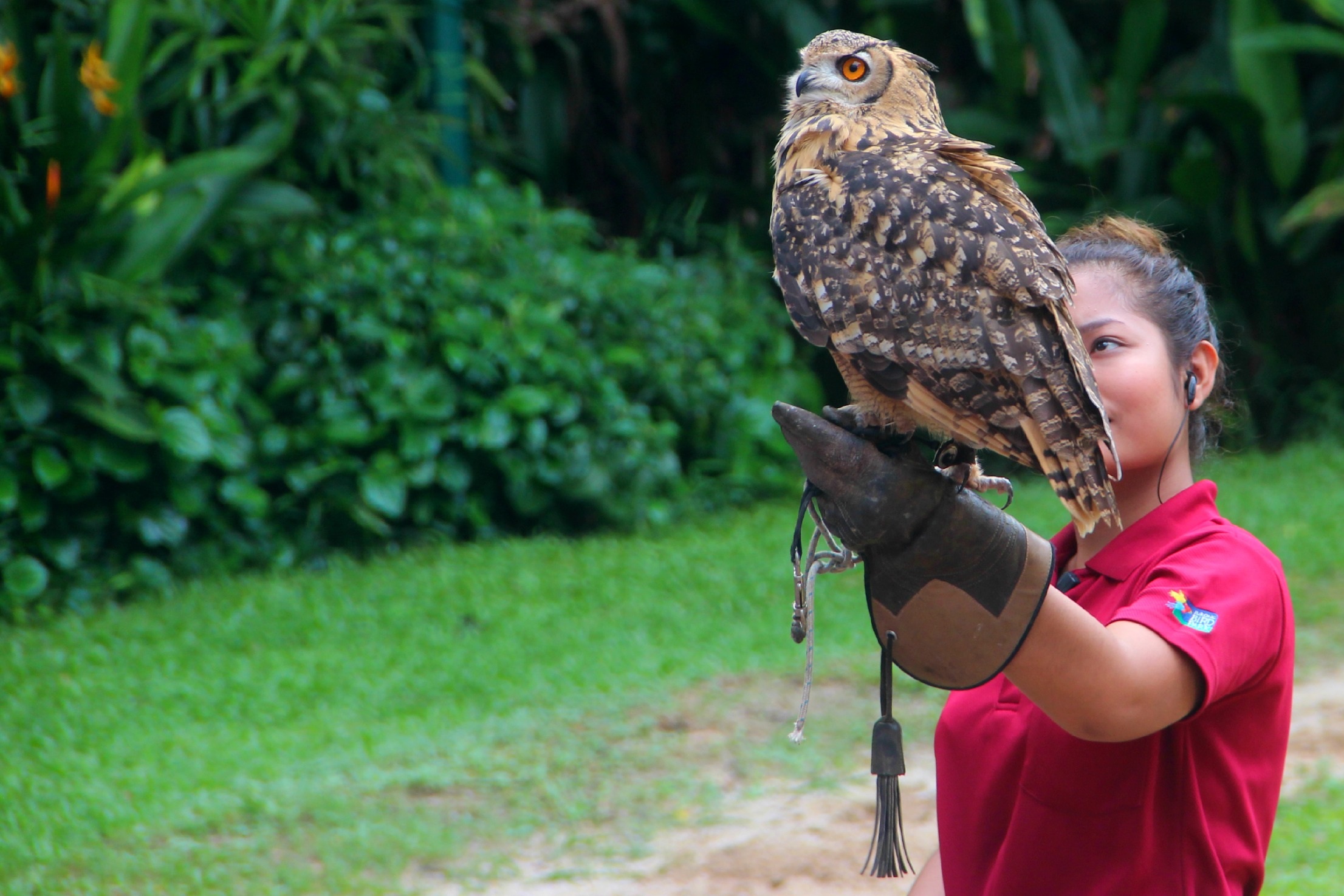 Free image/jpeg, Resolution: 2212x1475, File size: 623Kb, owl bird and girl picture with tags: bird of prey, girl, woman, blur, park