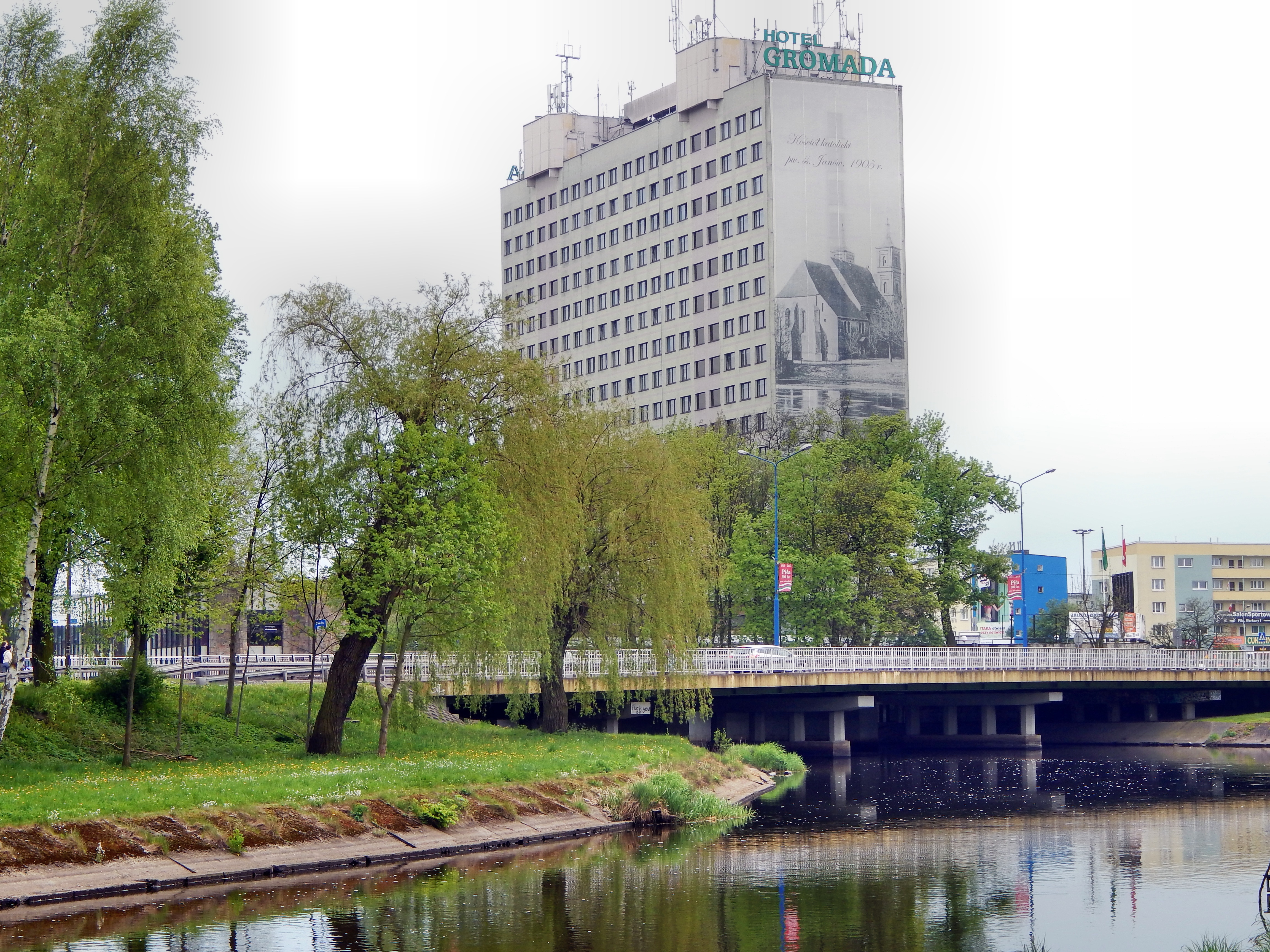 Free image/jpeg, Resolution: 4608x3456, File size: 4.16Mb, bridge aceoss gwda river in city, poland picture with tags: in saw, river gwda, bridge