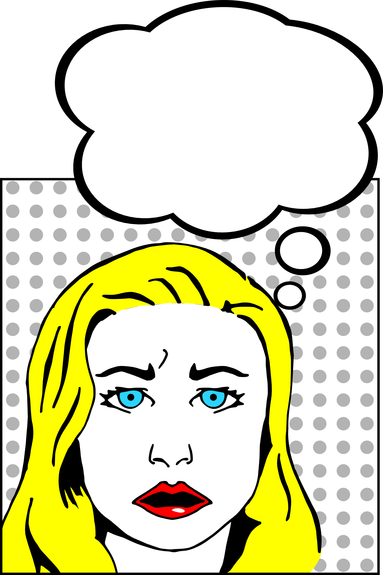 Free image/png, Resolution: 1278x1920, File size: 252Kb, worried blonde woman face, pop-art picture with tags: face, pop-art, woman, blonde, bubble