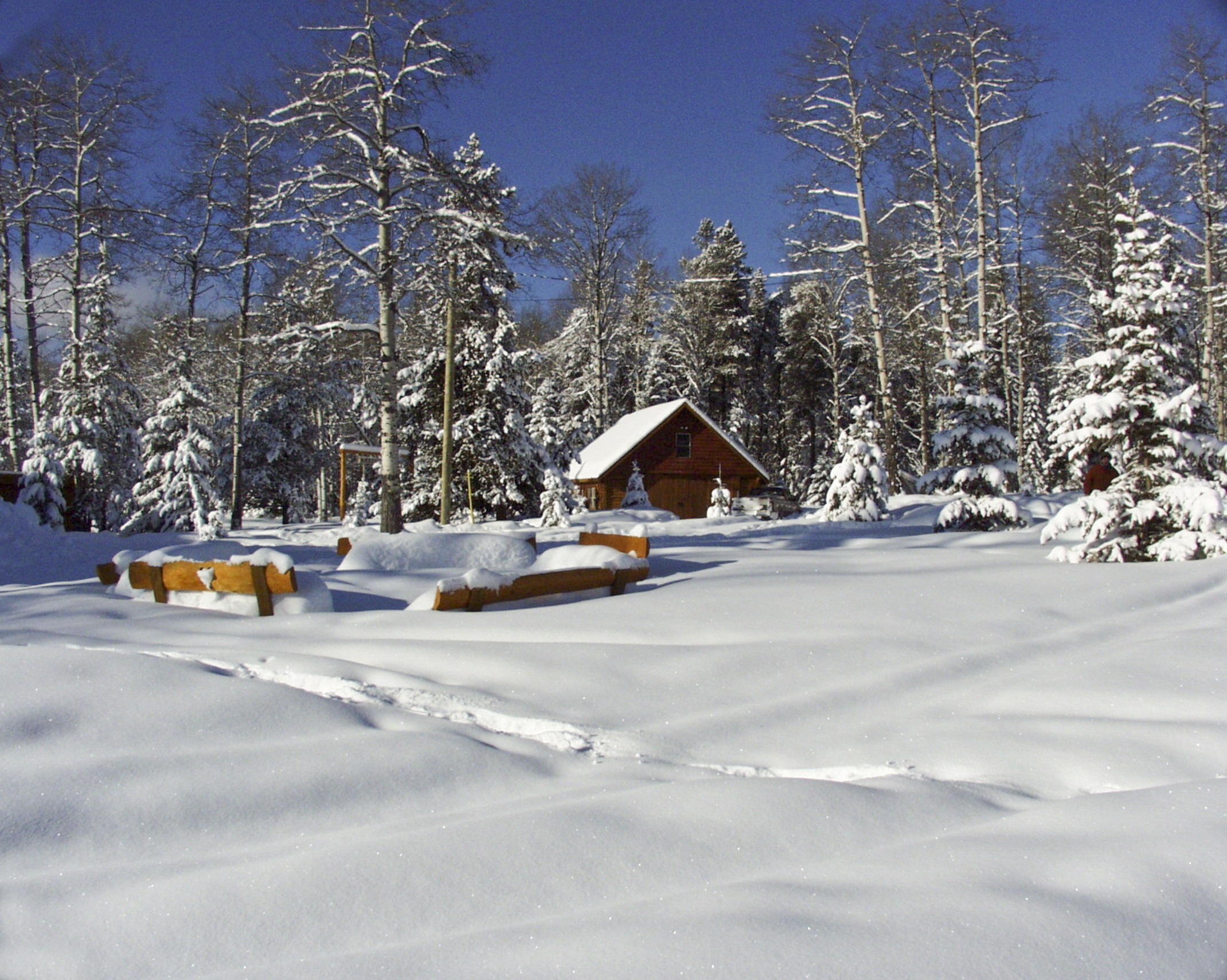 Free image/jpeg, Resolution: 2140x1710, File size: 867Kb, wooden ranch building at snowy forest picture with tags: wooden, architecture, nature, snow, cold, wintry, building, ranch
