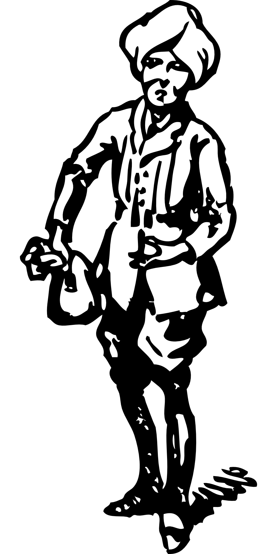 Free image/png, Resolution: 960x1920, File size: 132Kb, Black and white drawing of the person with bag of money picture with tags: male, person, money, carrying, turban, wearing, indian, black and white