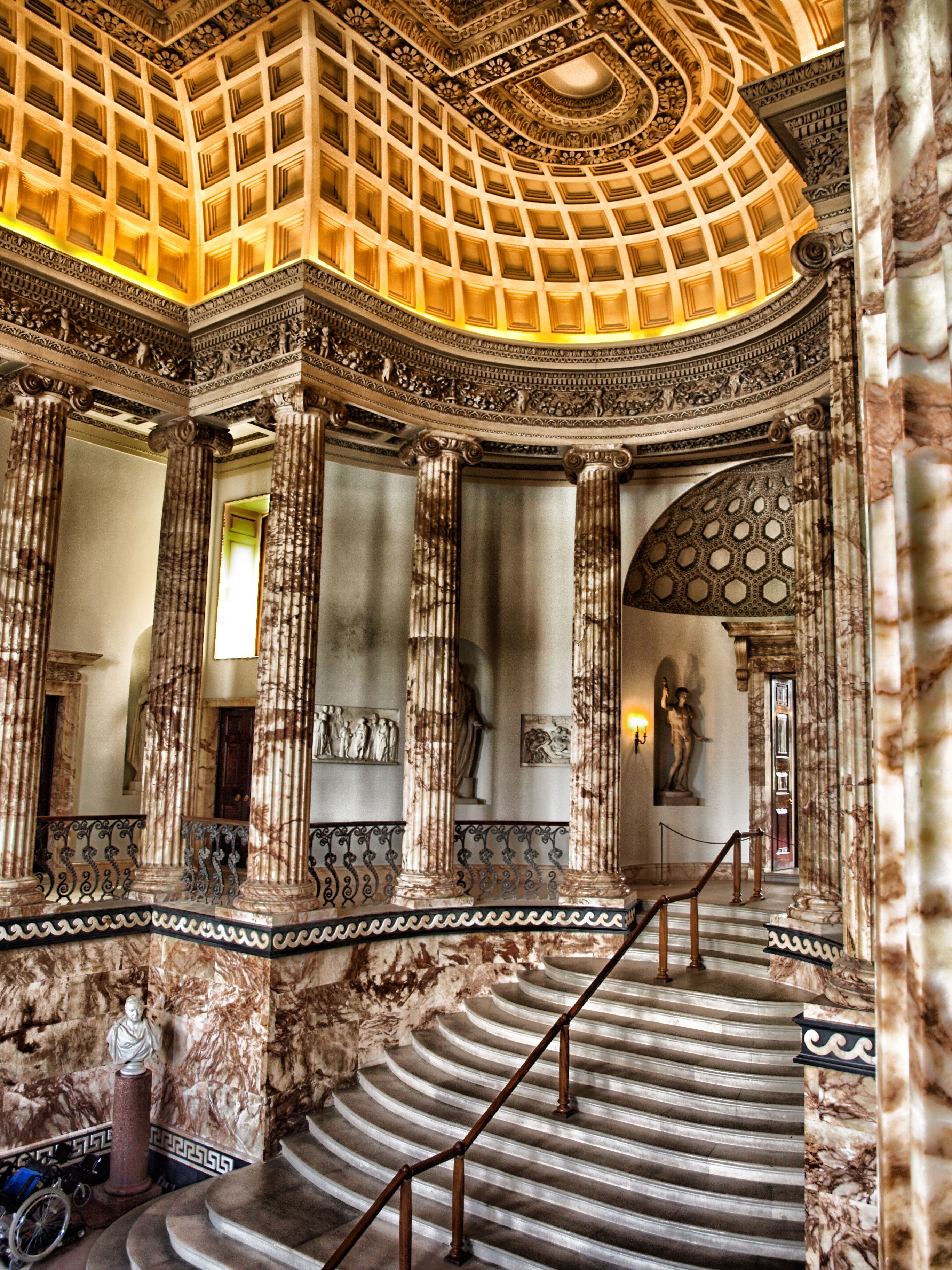 Free image/jpeg, Resolution: 2736x3648, File size: 2.96Mb, ornate interior of marble hall, england, norfolk, holkham hall picture with tags: norfolk, england, holkham hall, marble hall, building, interior, steps, columns